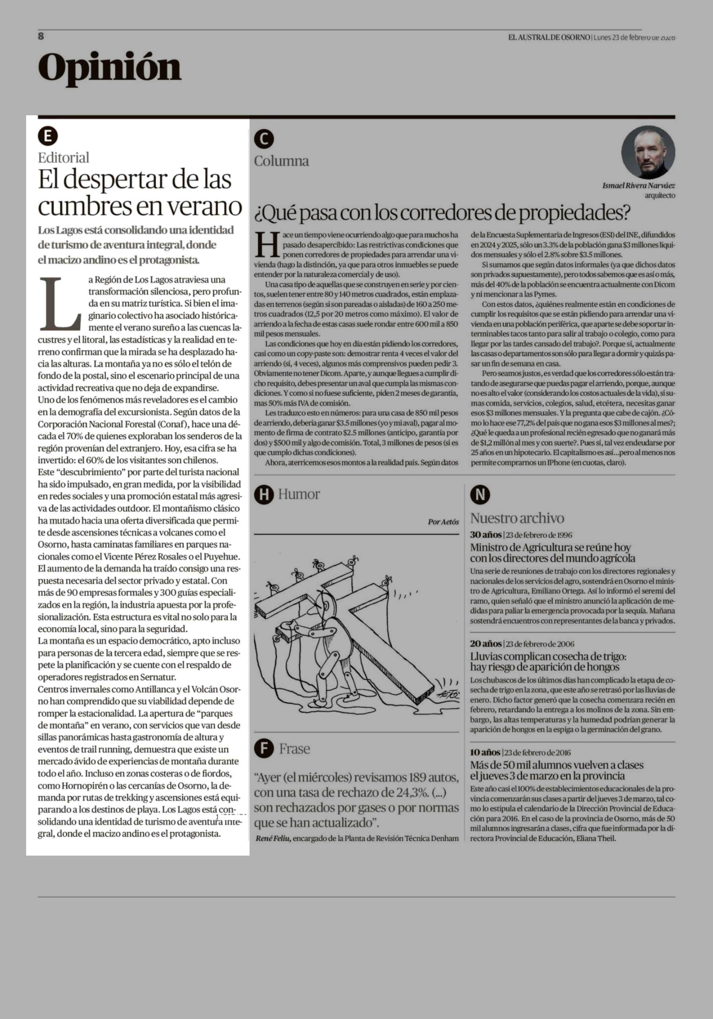 Editorial: El despertar de las cumbres en verano 23-02-2026 El Austral de Osorno |