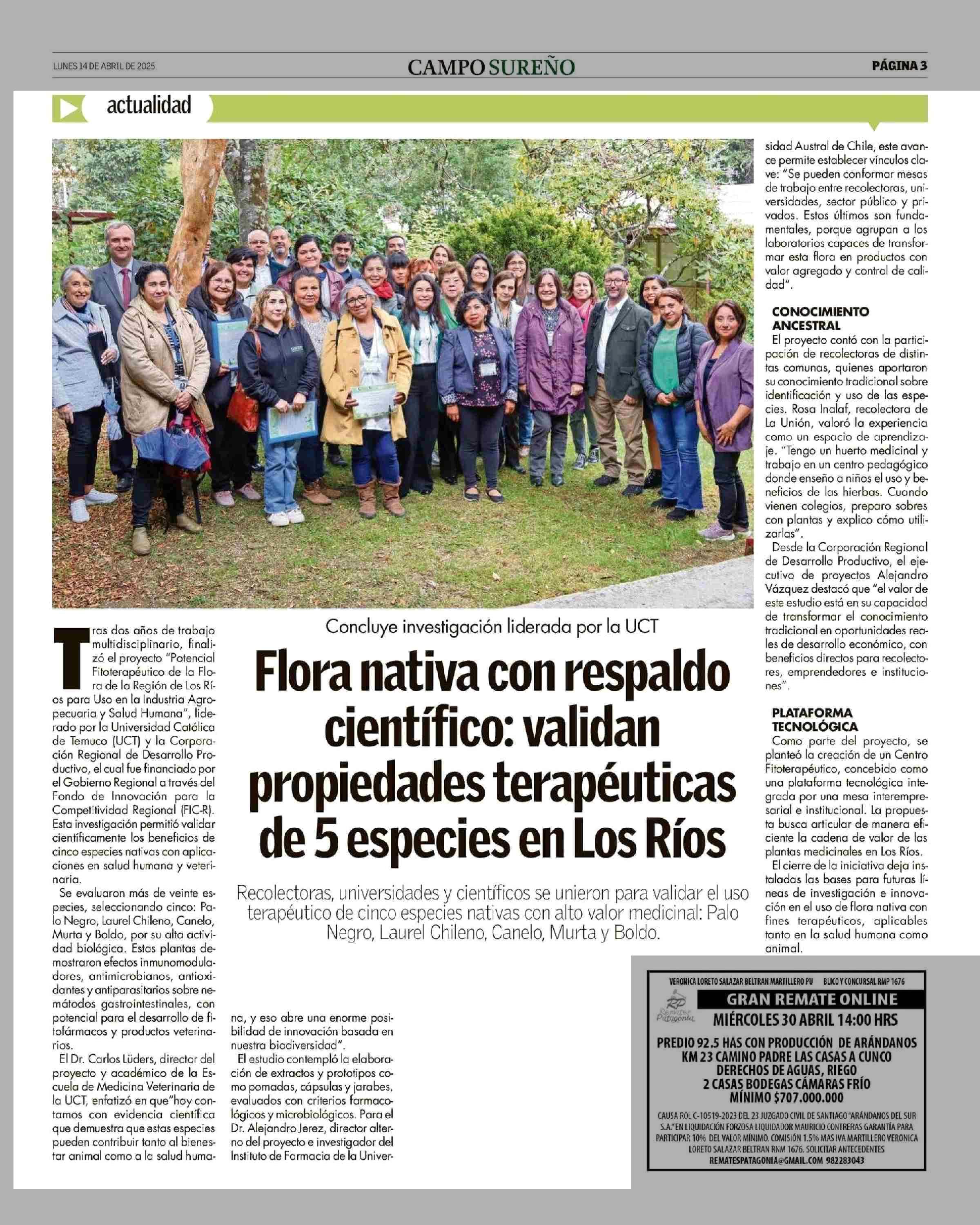 | Título: | Flora nativa con respaldo científico: validan propiedades terapéuticas de 5 especies en Los Ríos |