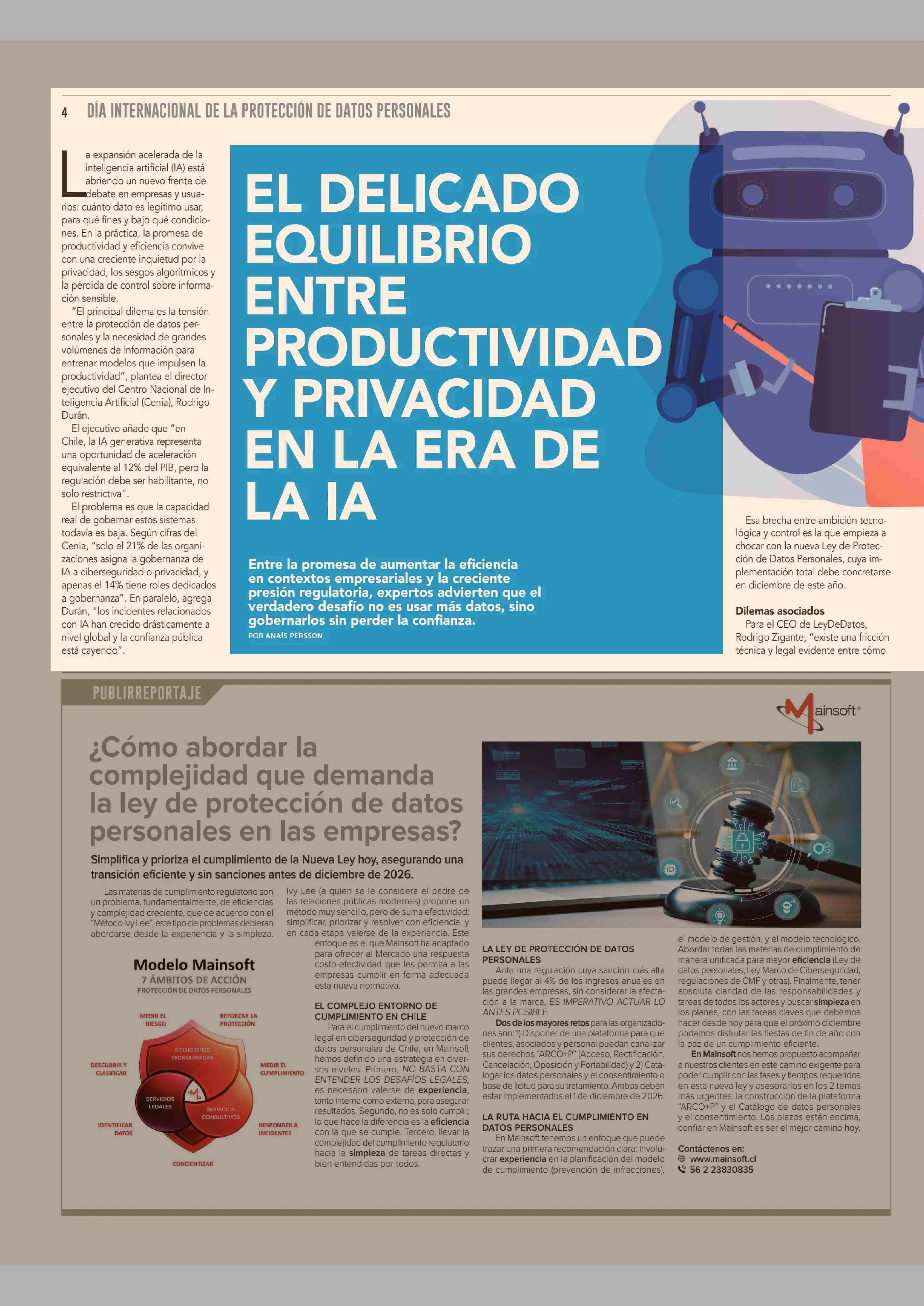 EL DELICADO EQUILIBRIO ENTRE PRODUCTIVIDAD Y PRIVACIDAD EN LA ERA DE LAIA 28-01-2026 Diario Financiero |