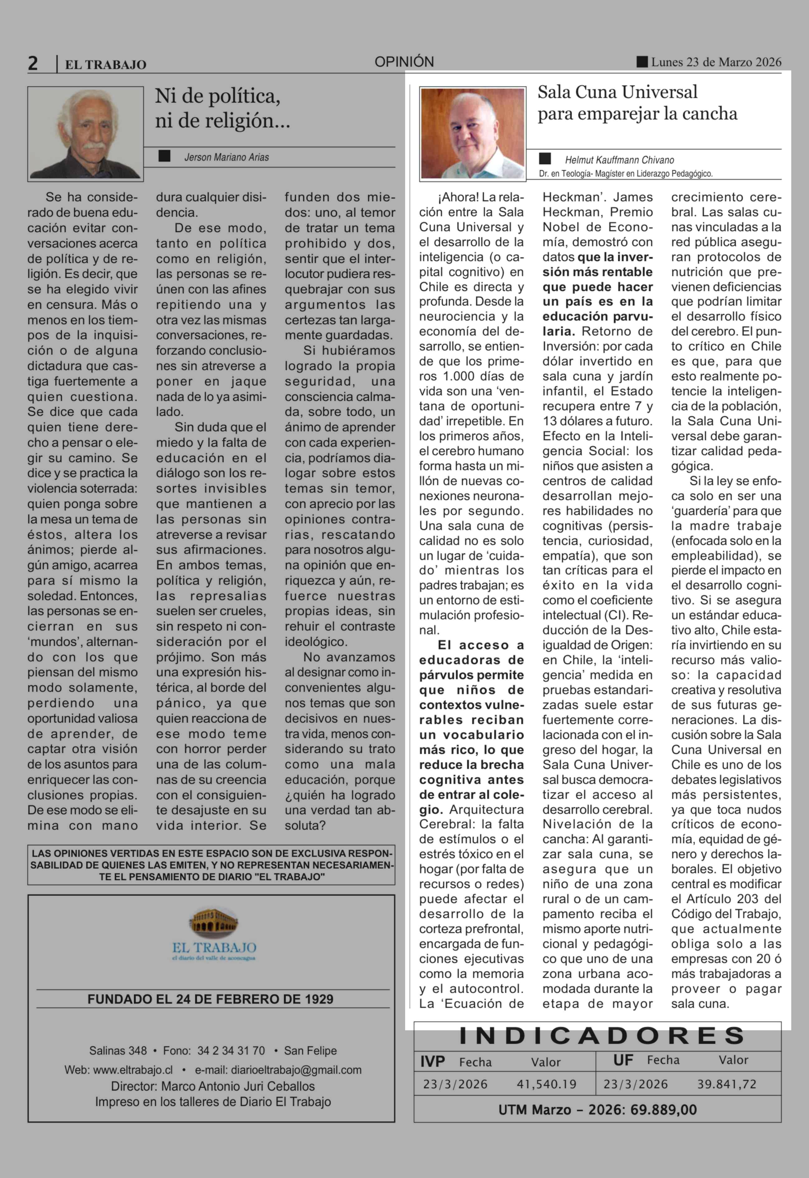 Fecha: 23-03-2026 Sector: Columnas de Opinión Región: Región de Valparaíso