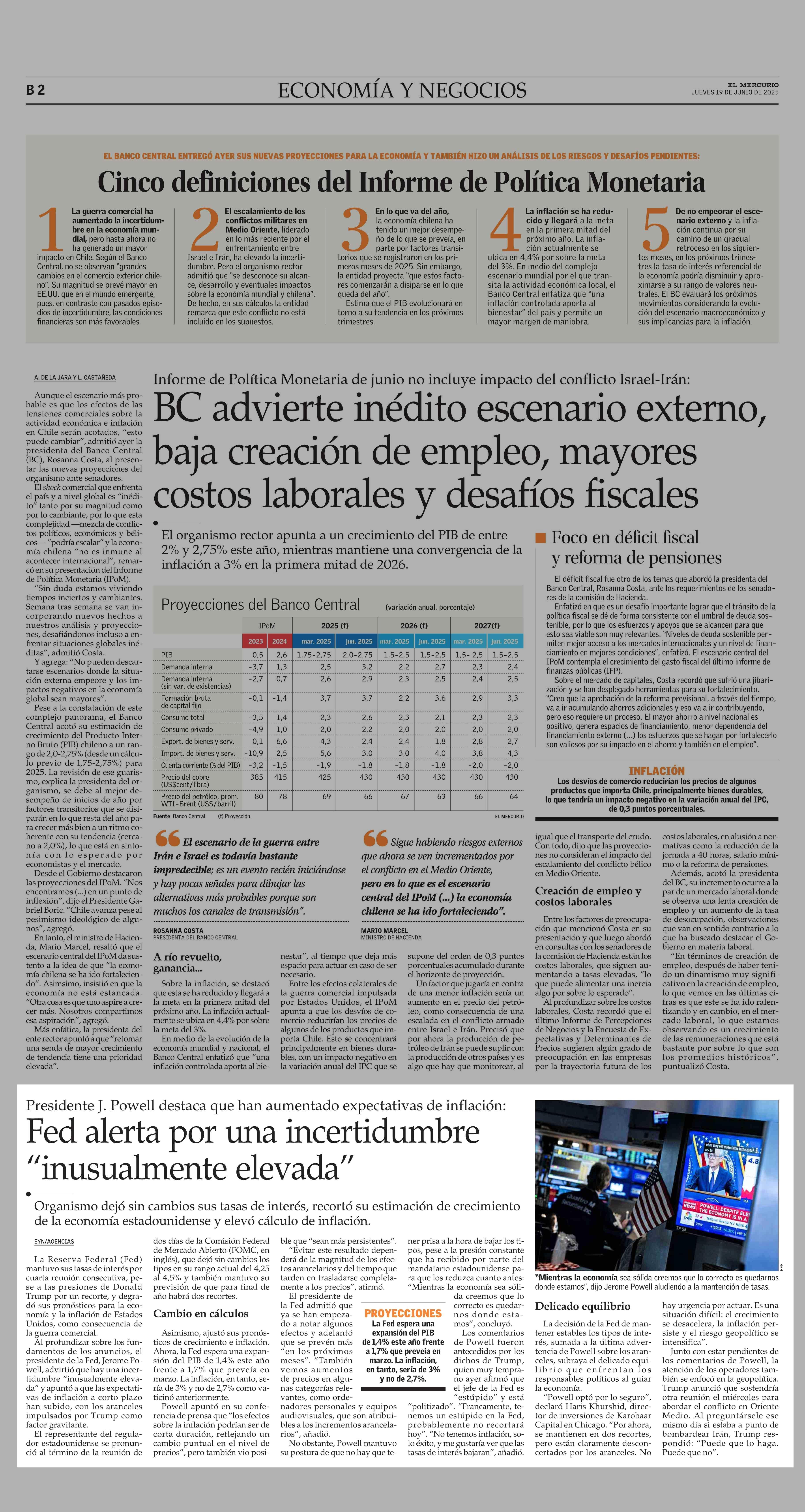 Fed alerta por una incertidumbre “inusualmente elevada” 19-06-2025 El Mercurio |