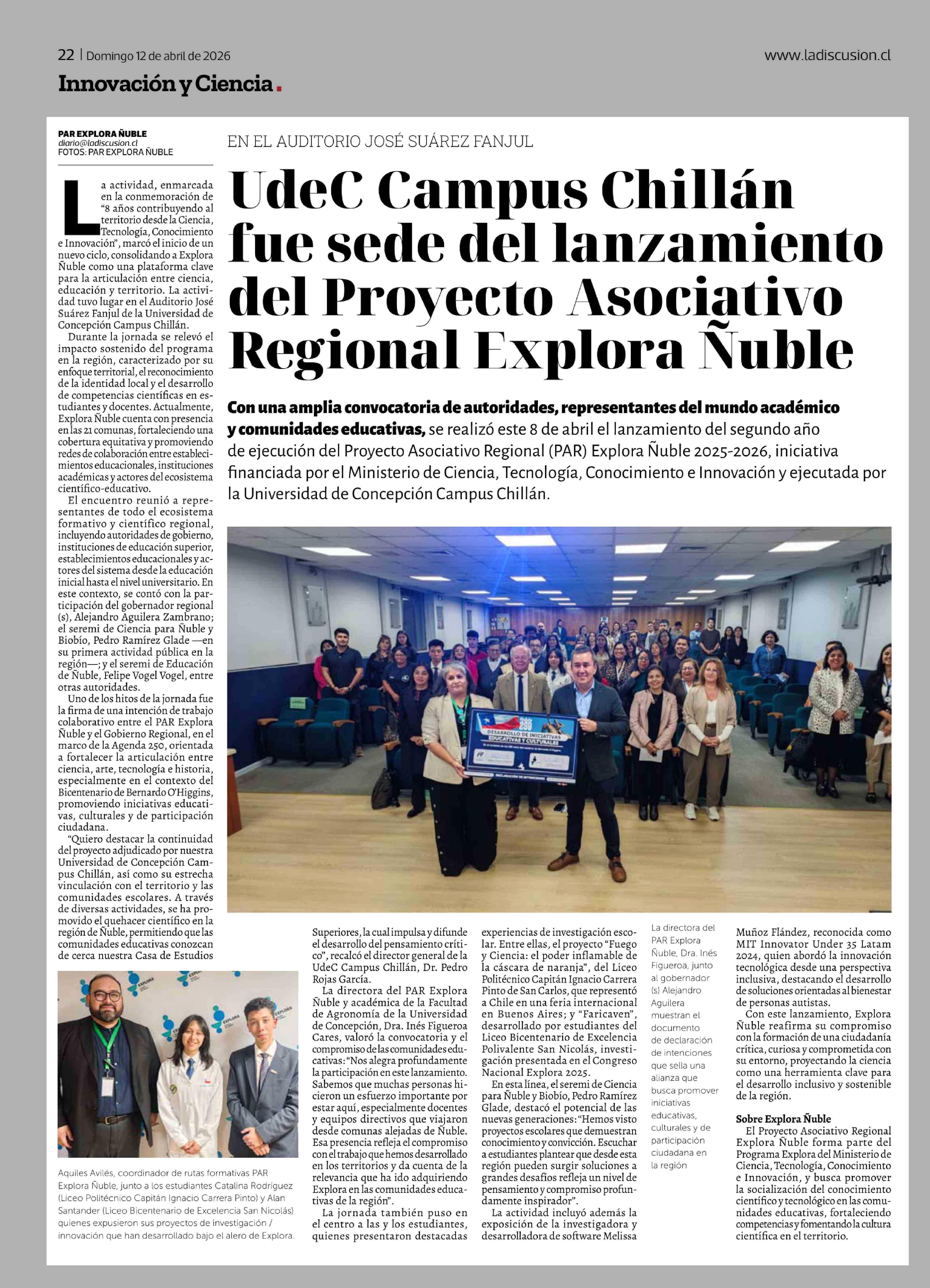Fecha: 12-04-2026 Sector: Noticia general Región: Región del Ñuble