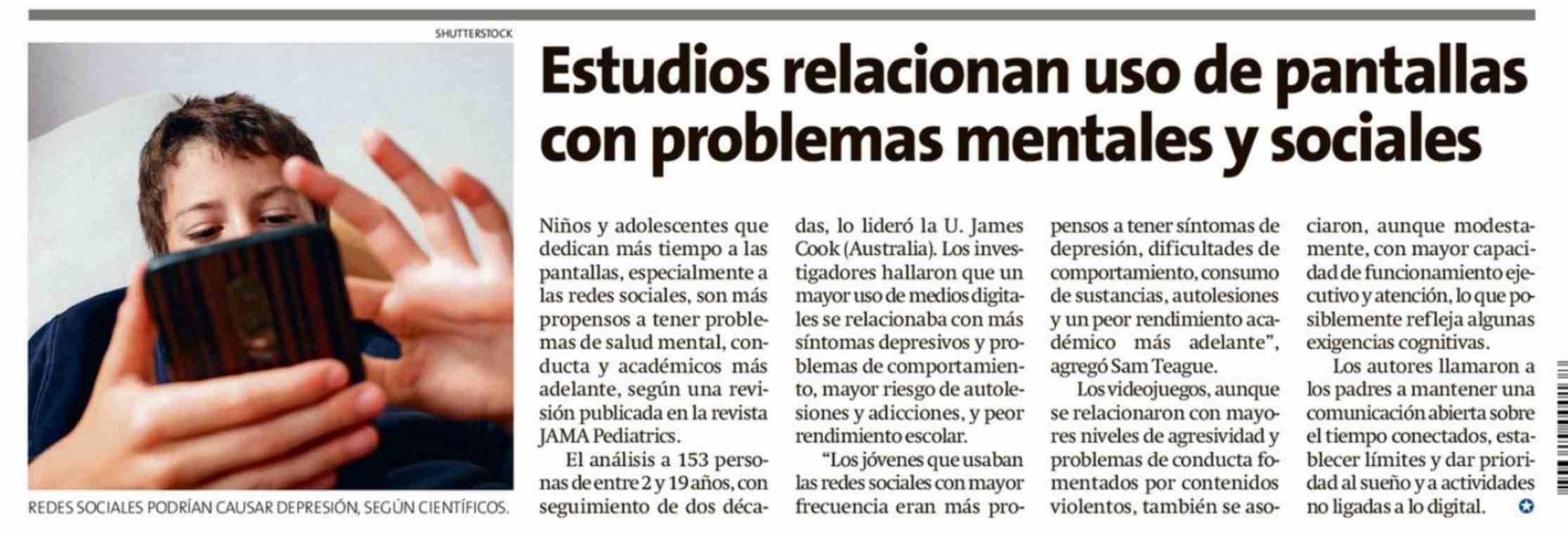 Título: Estudios relacionan uso de pantallas con problemas mentales y sociales