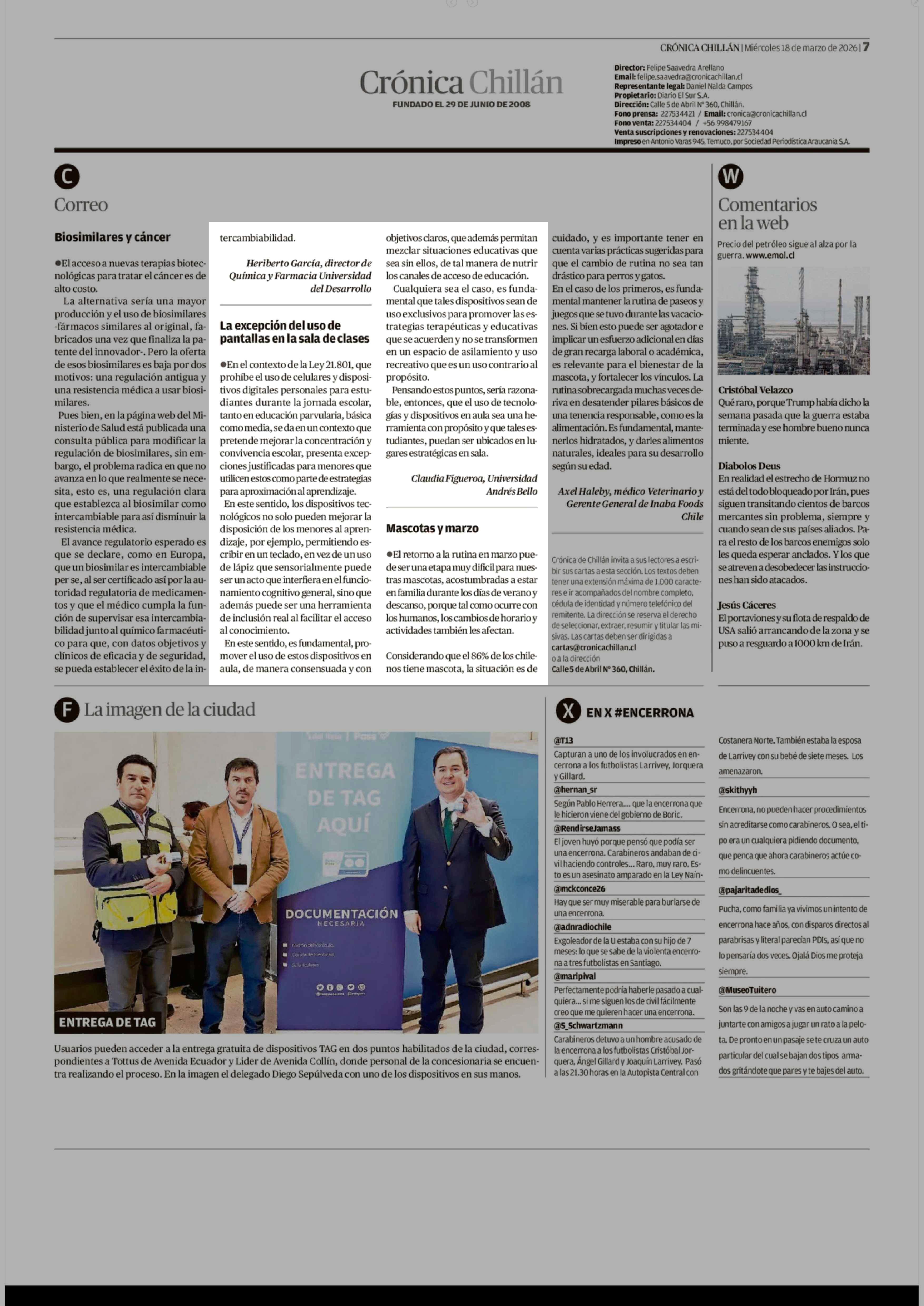 Cartas: La excepción del uso de pantallas en la sala de clases 18-03-2026 Crónica de Chillán |