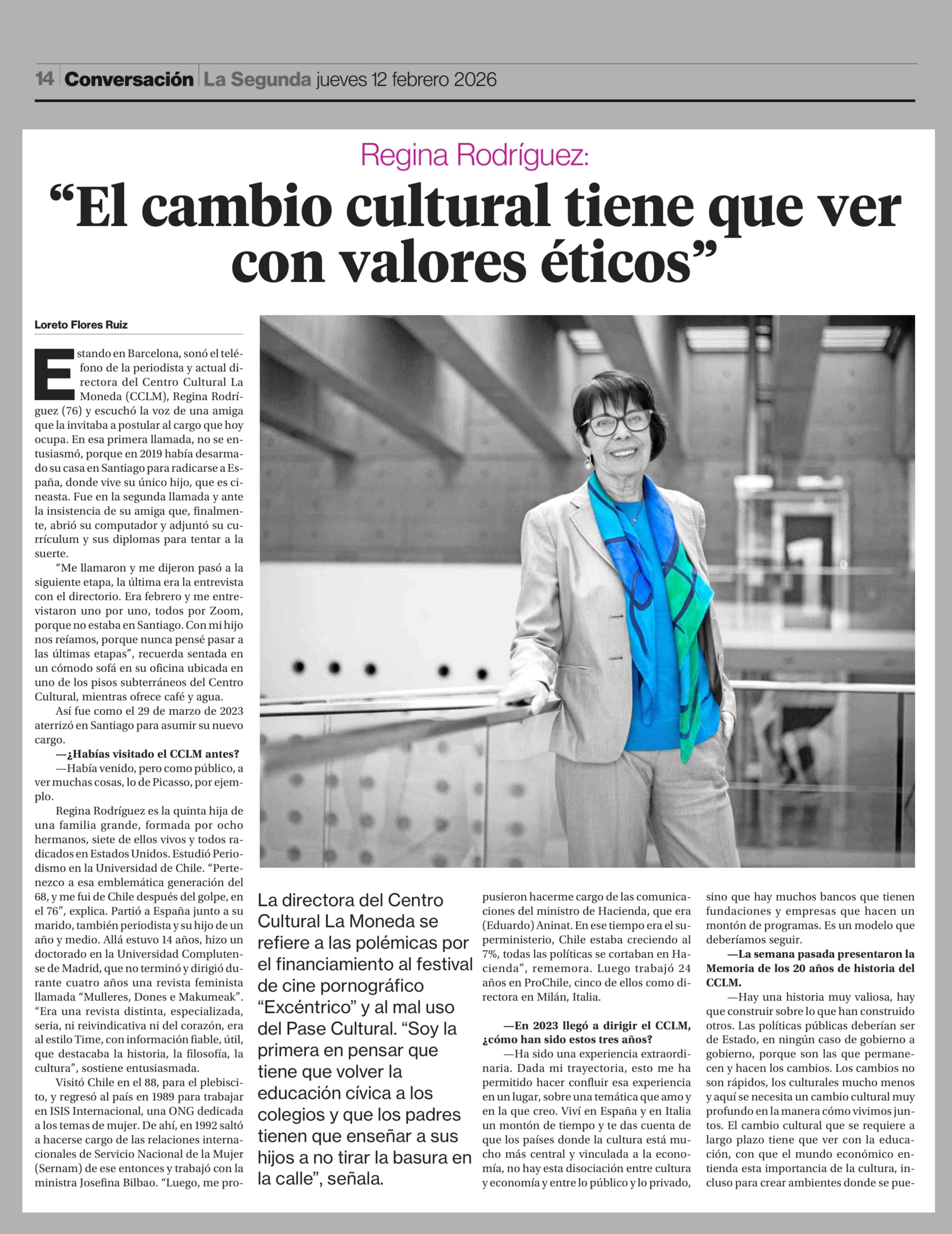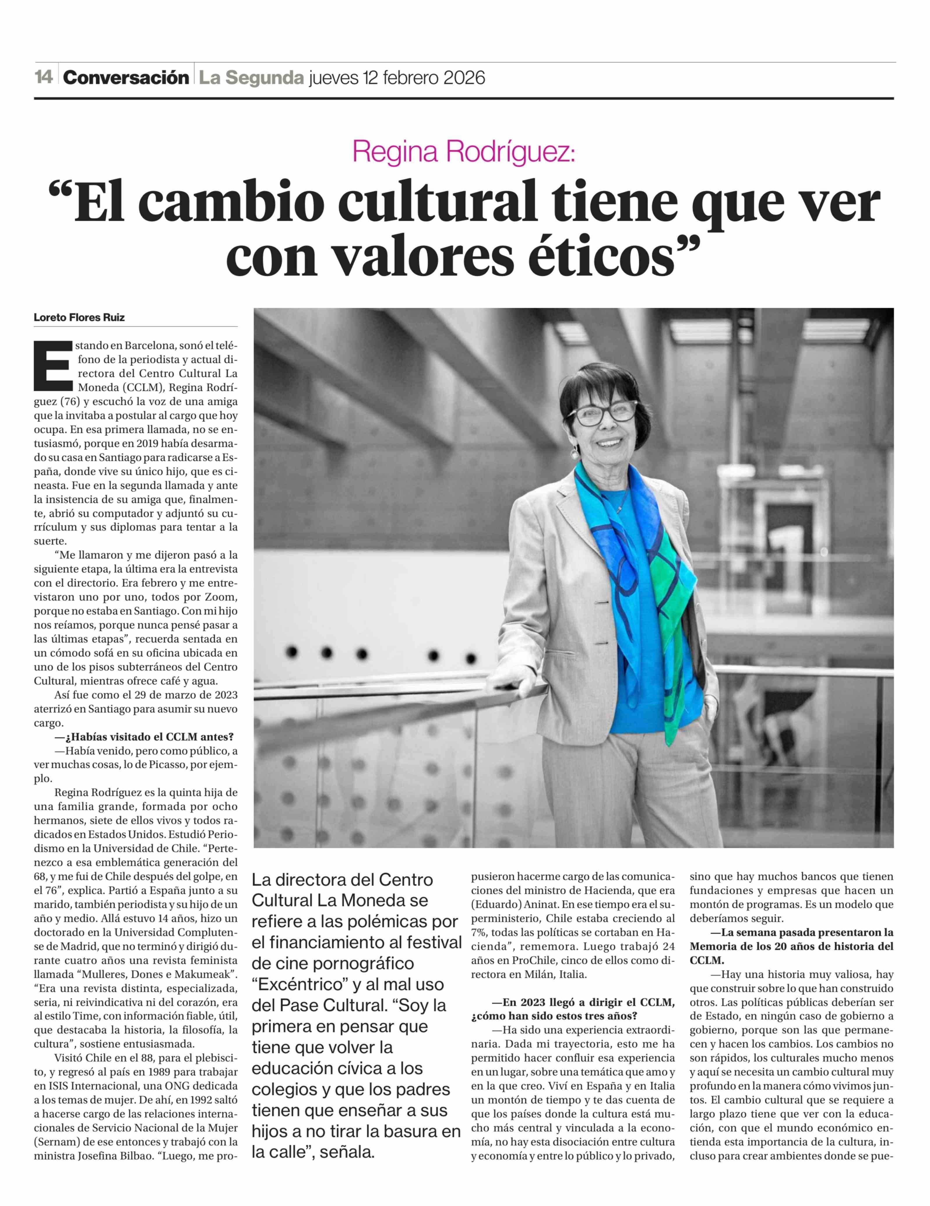"El cambio cultural tiene que ver con valores éticos" 12-02-2026 La Segunda |