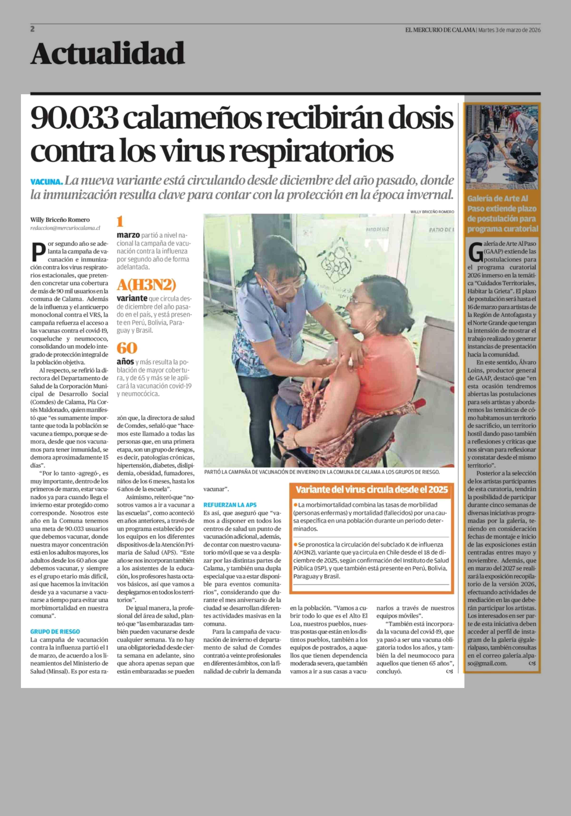 90.033 Calameños recibirán dosis contra los virus respiratorios 03-03-2026 El Mercurio de Calama |