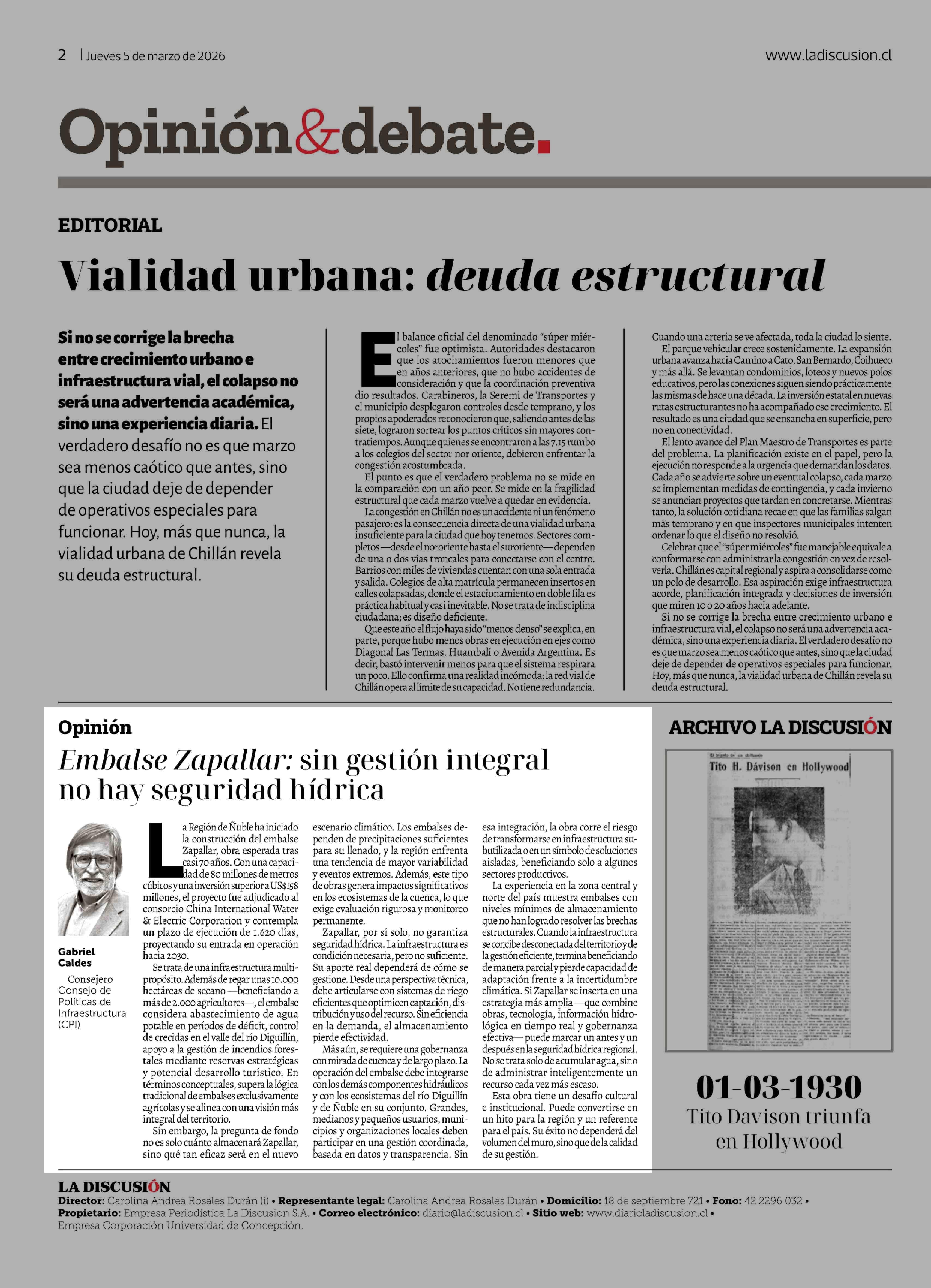 Fecha: 05-03-2026 Sector: Columnas de Opinión Región: Región del Ñuble