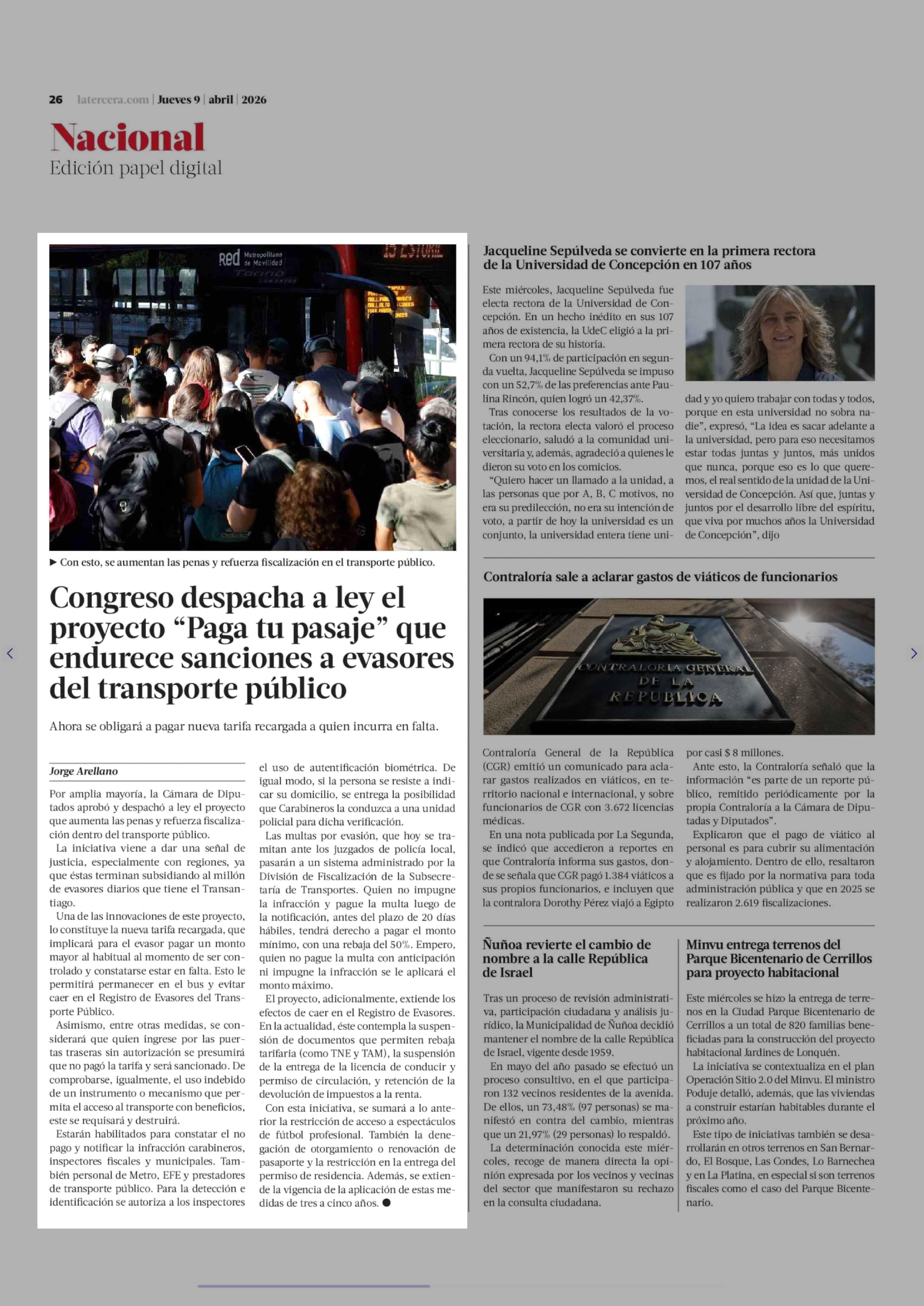 Título: Congreso despacha a ley el proyecto "Paga tu pasaje" que endurece sanciones a evasores del transporte público