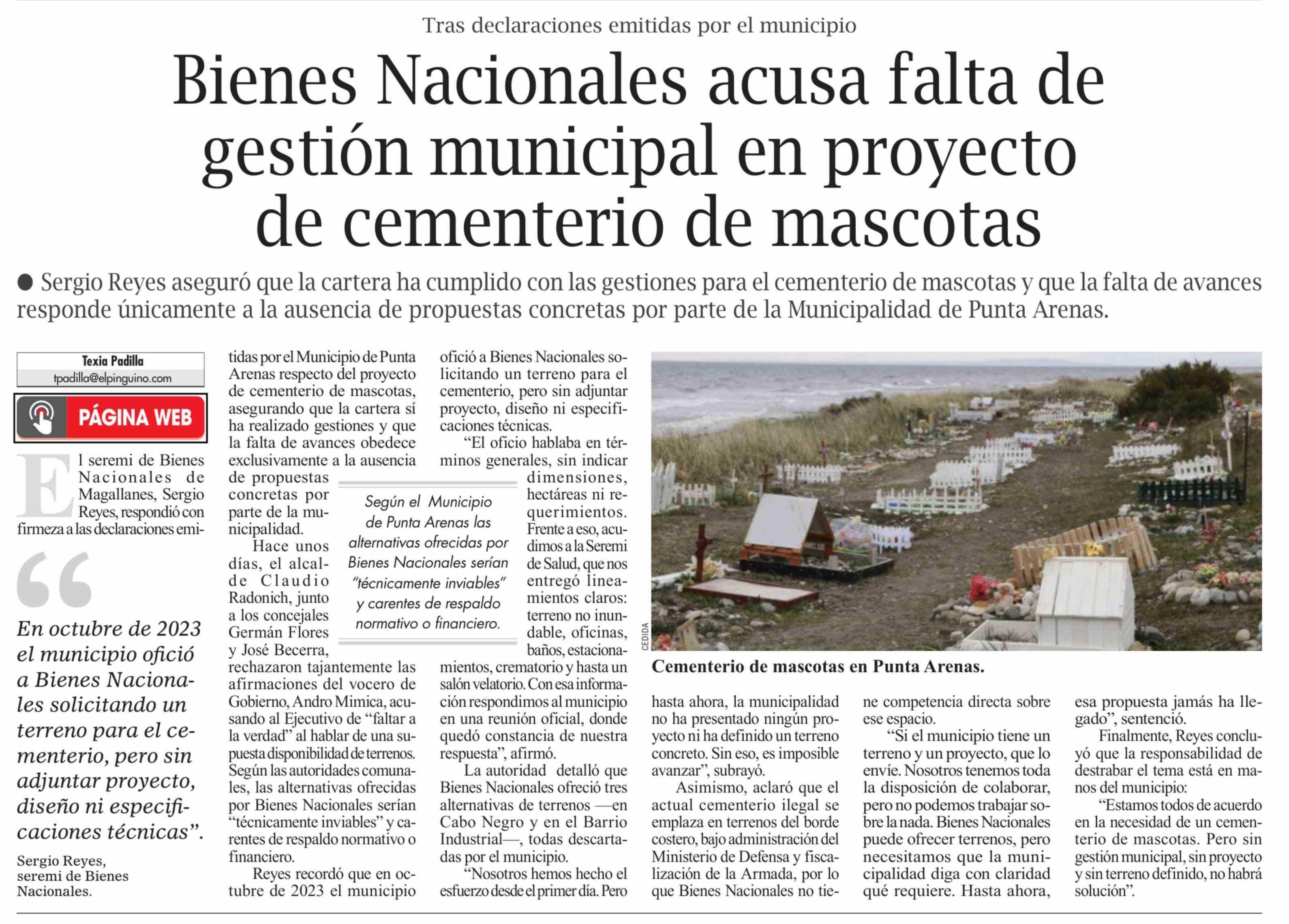 Título: Bienes Nacionales acusa falta de gestión municipal en proyecto de cementerio de mascotas