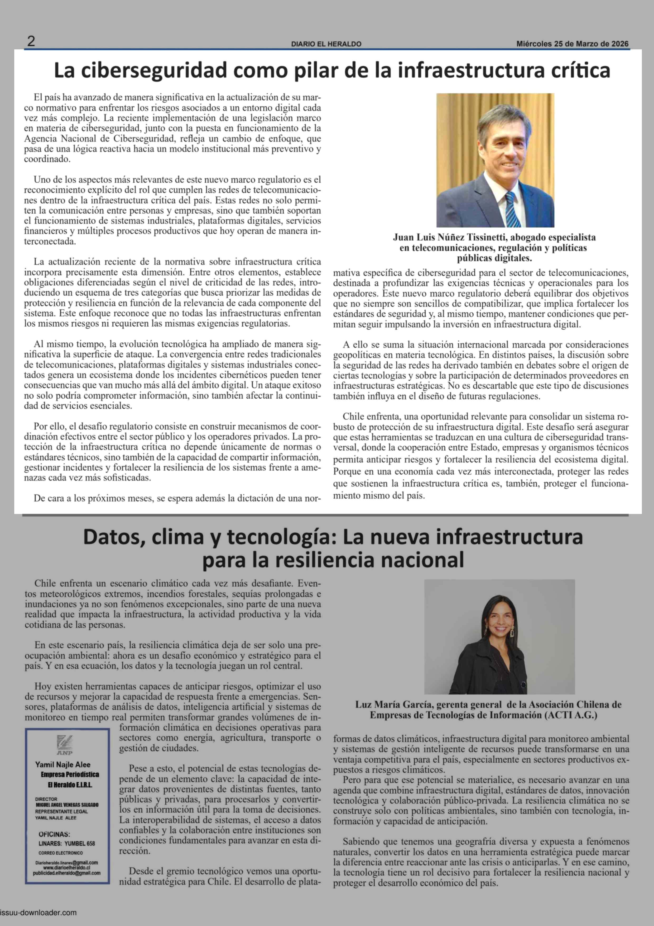 Columnas de Opinión: La ciberseguridad como pilar de la infraestructura crítica 25-03-2026 El Heraldo |