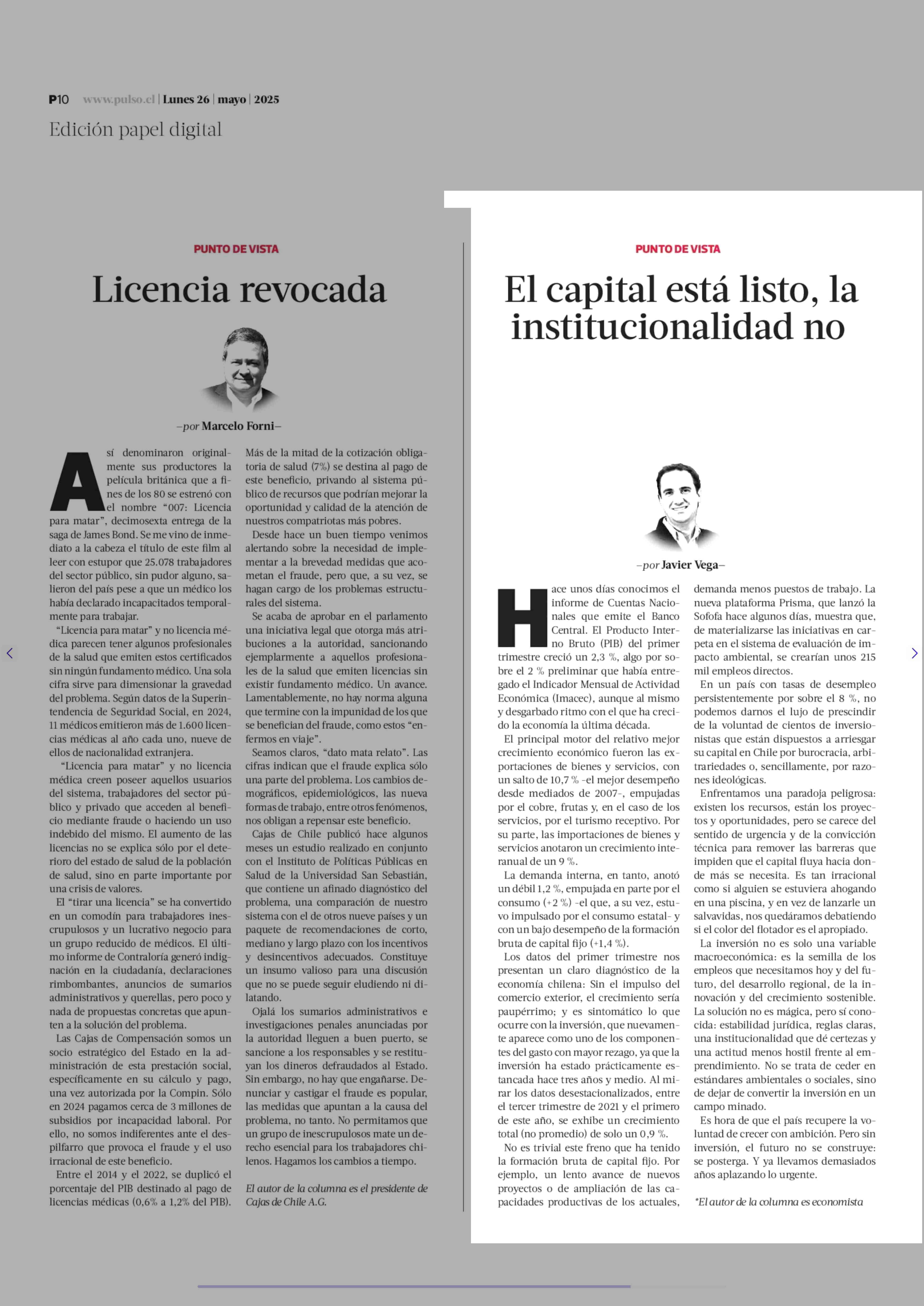 El capital está listo, la institucionalidad no 26-05-2025 La Tercera |