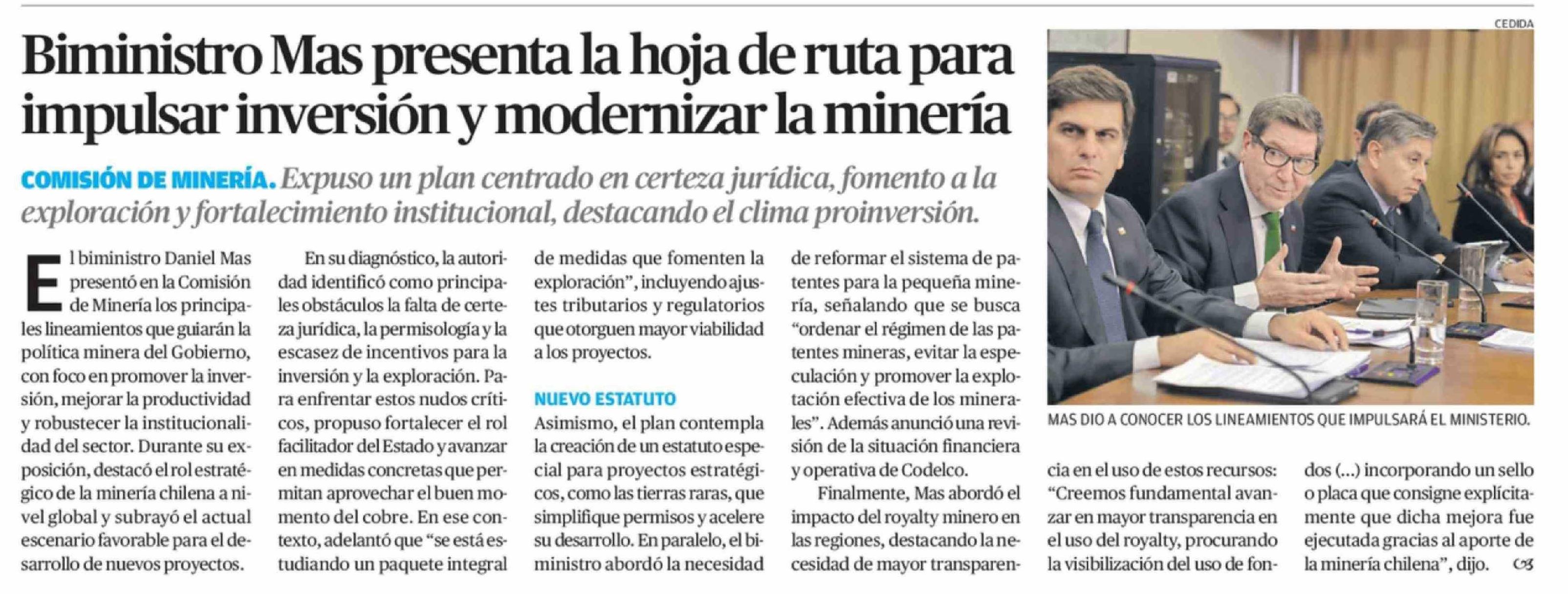 Título: Biministro Mas presenta la hoja de ruta para impulsar inversión y modernizar la minería