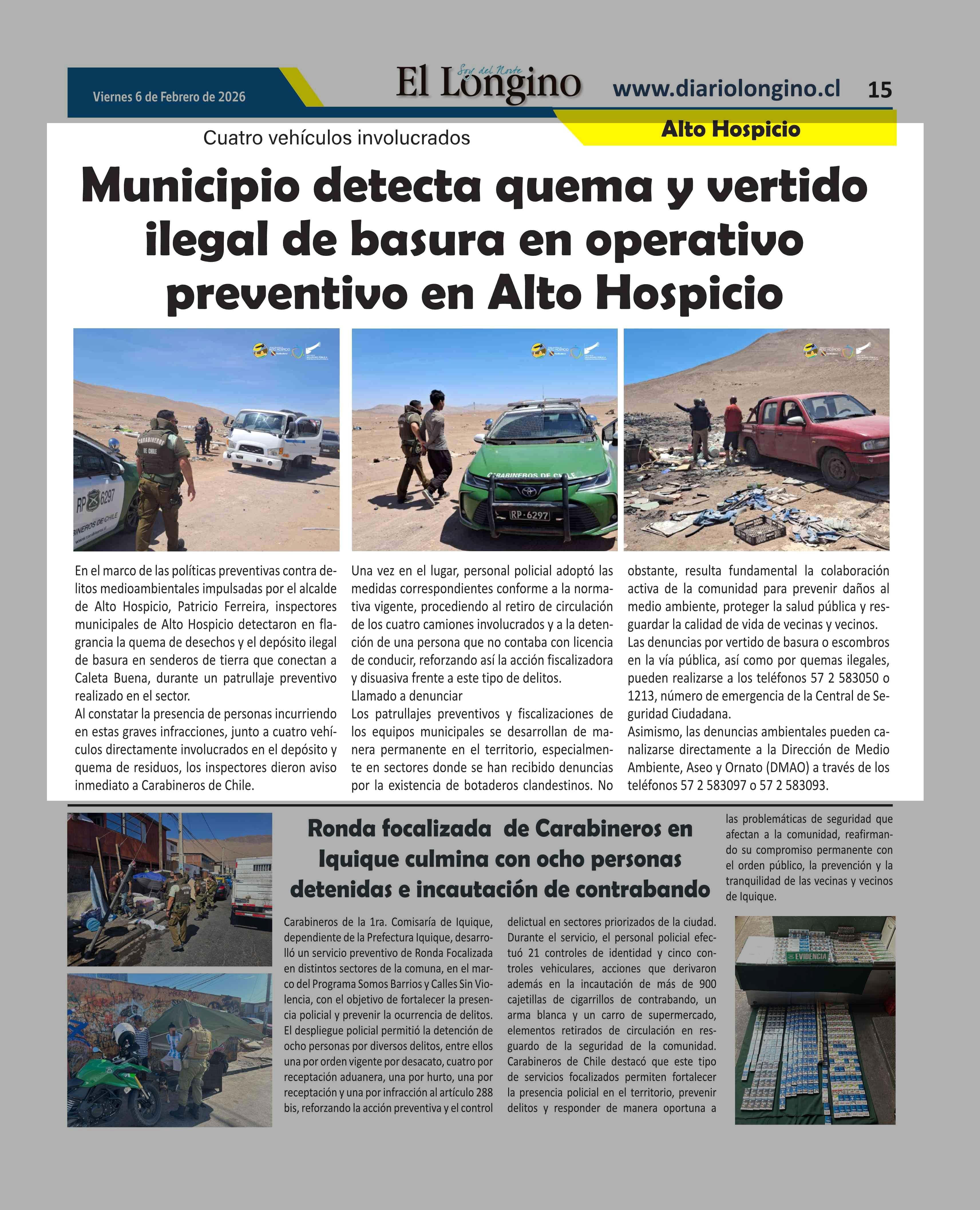 Fecha: 06-02-2026 Sector: Noticia general Región: Región de Tarapacá