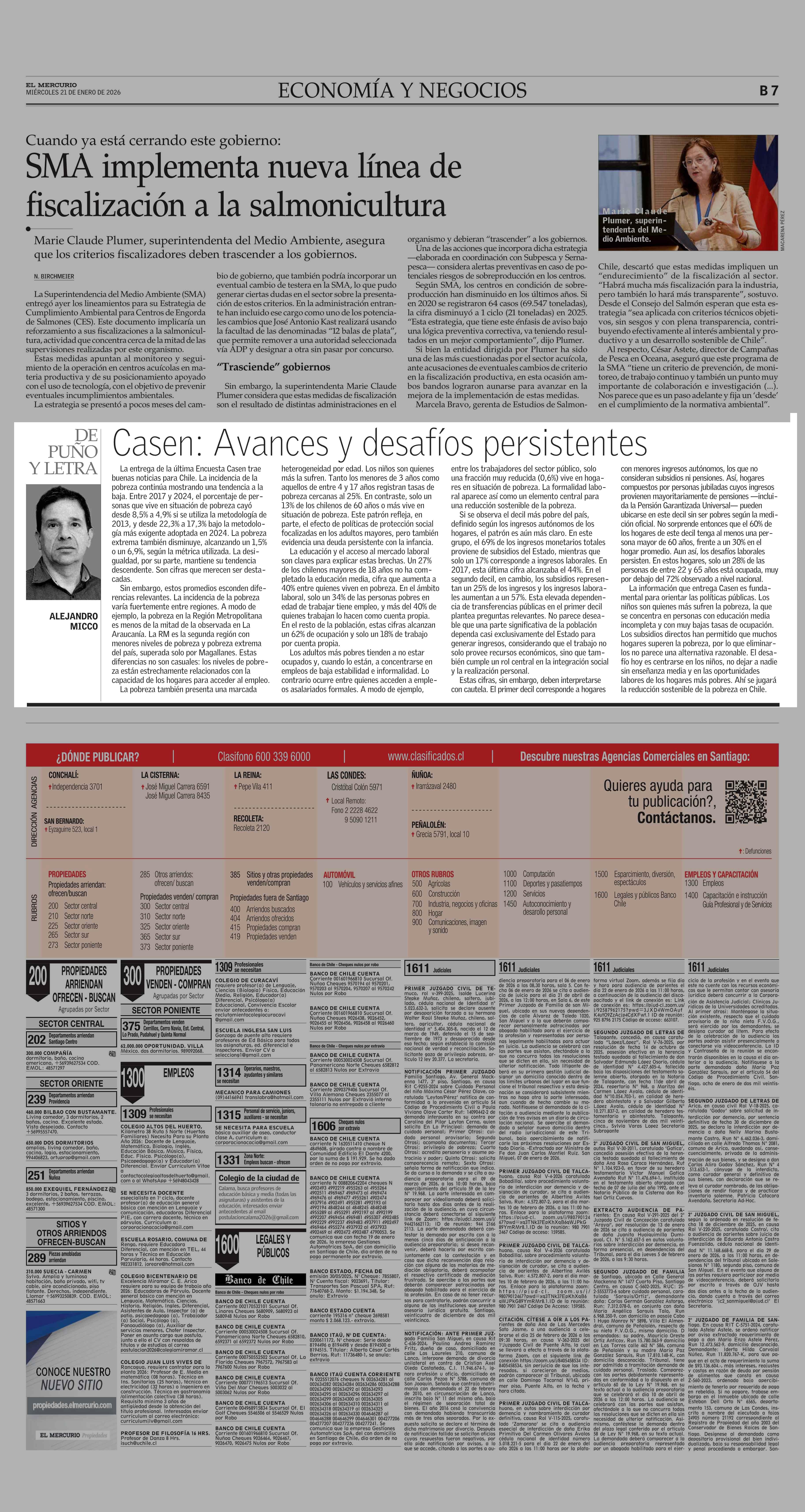 COLUMNAS DE OPINIÓN: Avances y desafíos persistentes 21-01-2026 El Mercurio |