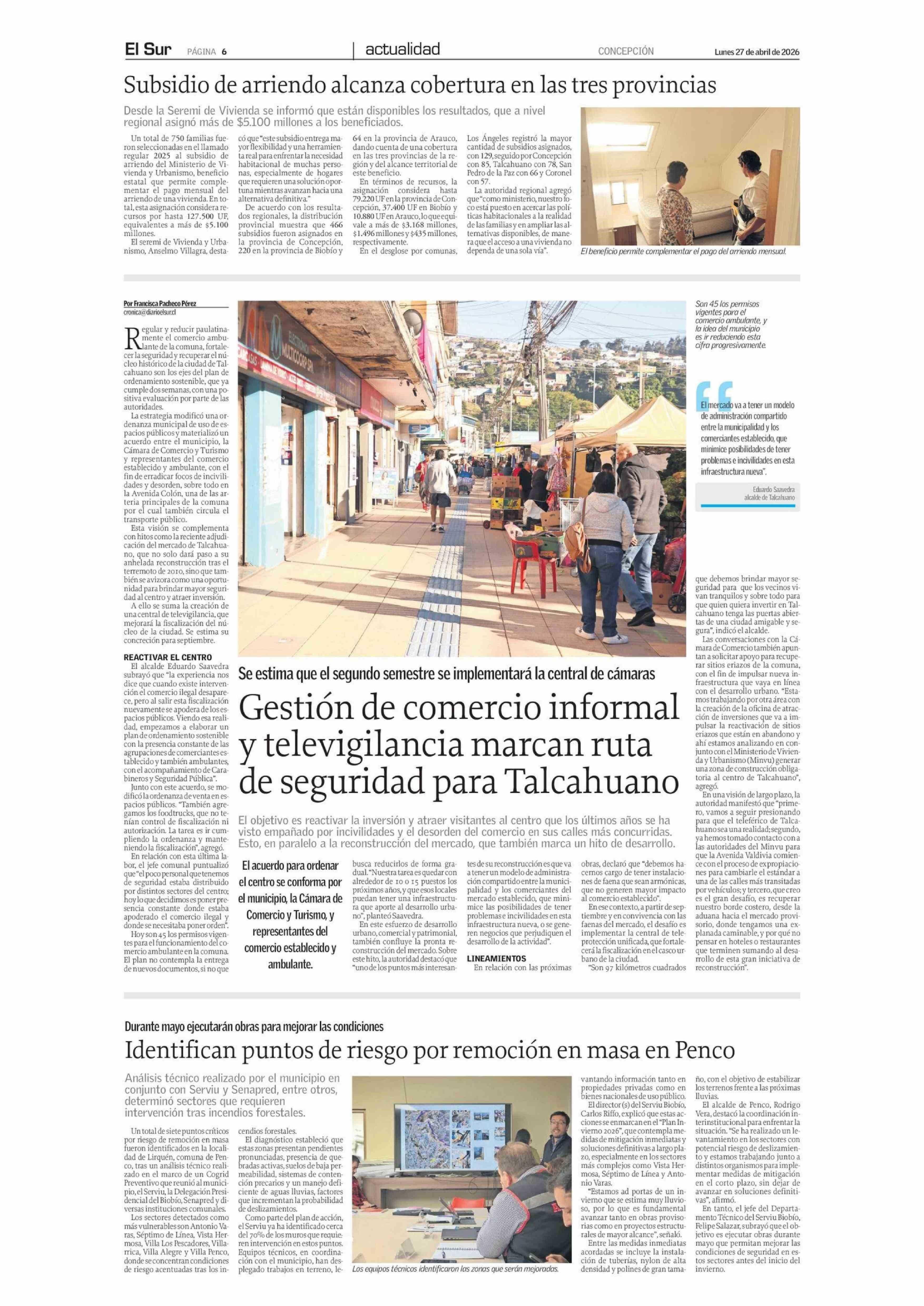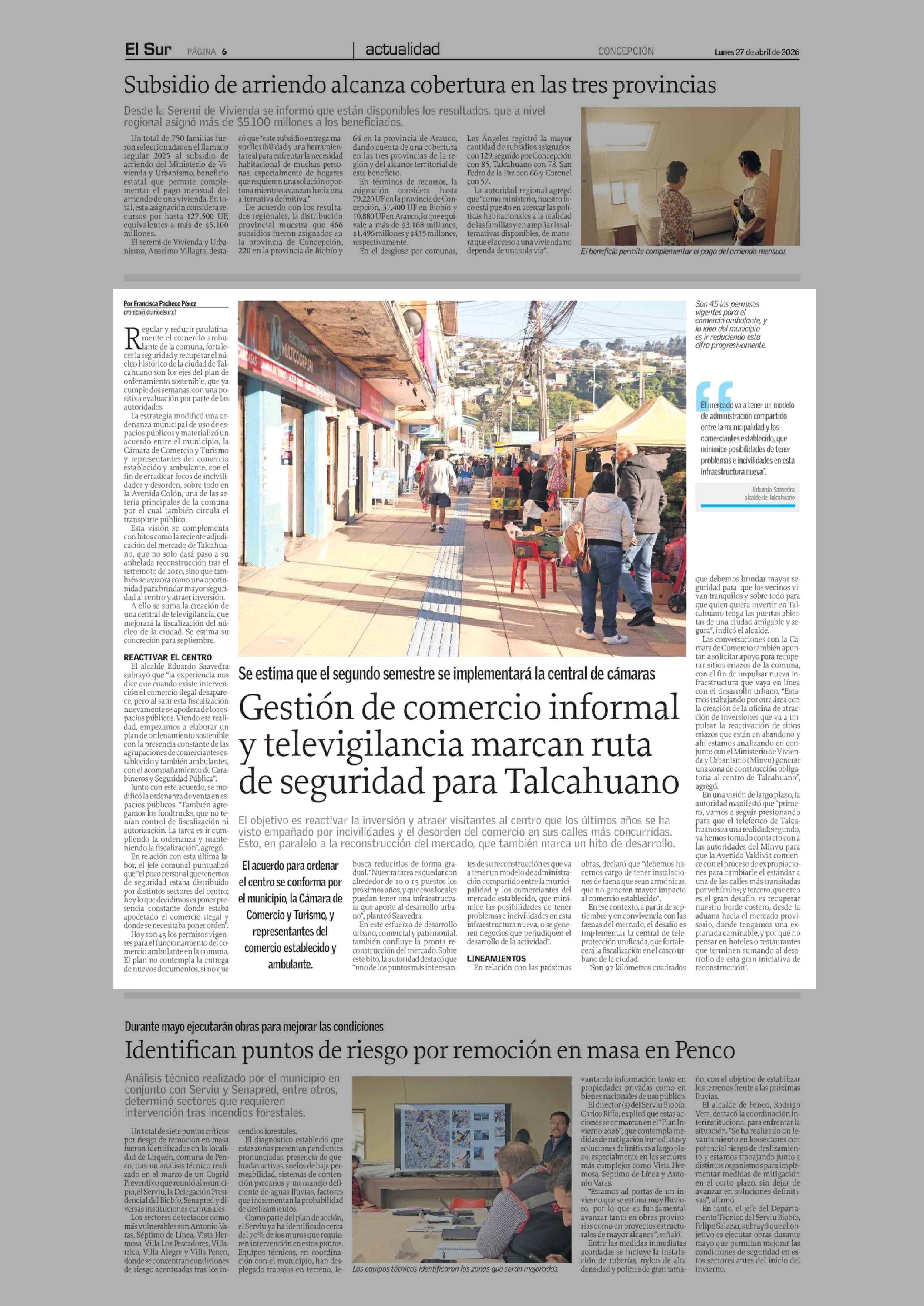 Gestión de comercio informal y televigilancia marcan ruta de seguridad para Talcahuano 27-04-2026 El Sur |