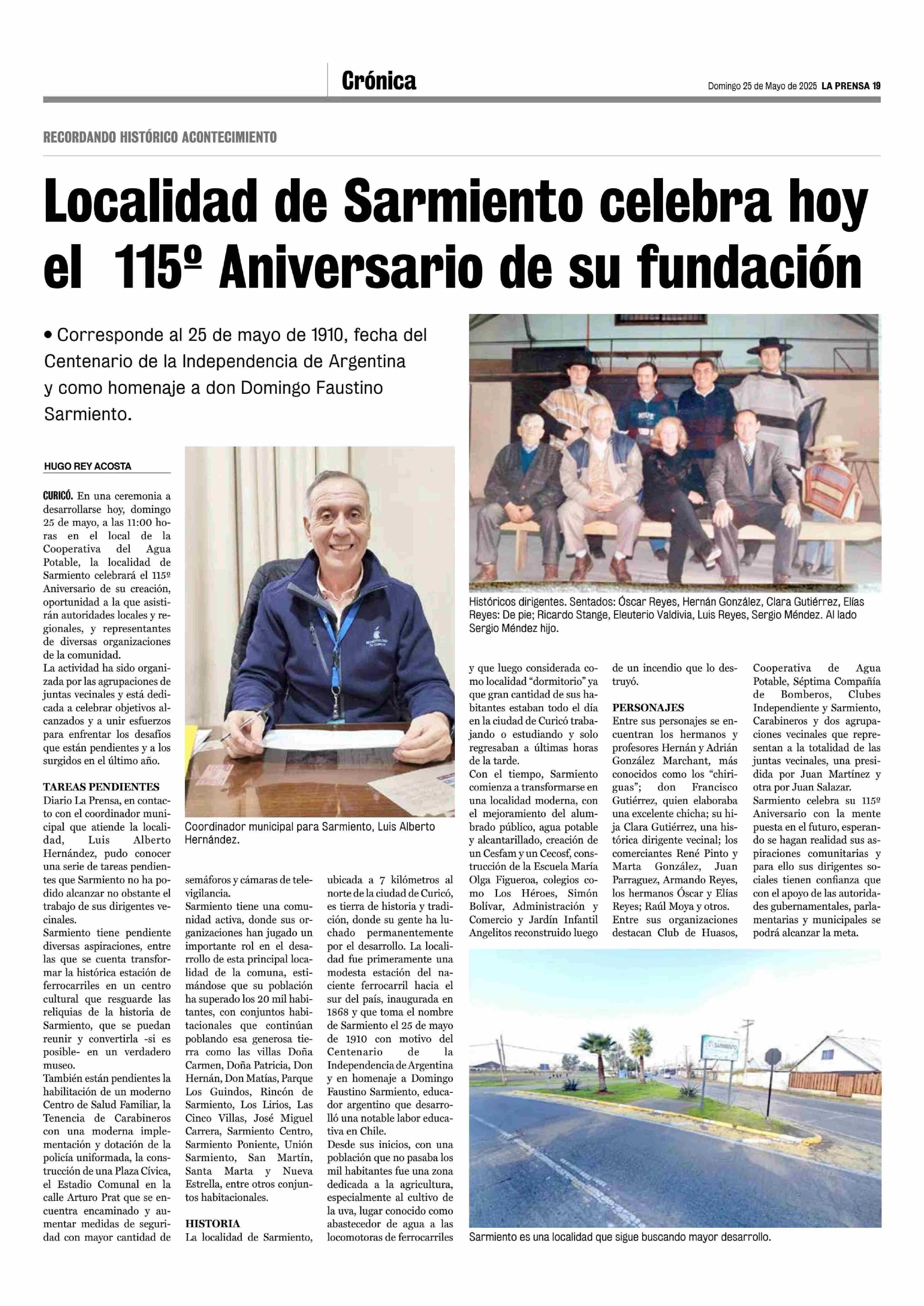 Título: Localidad de Sarmiento celebra hoy el 115 Aniversario de su fundación