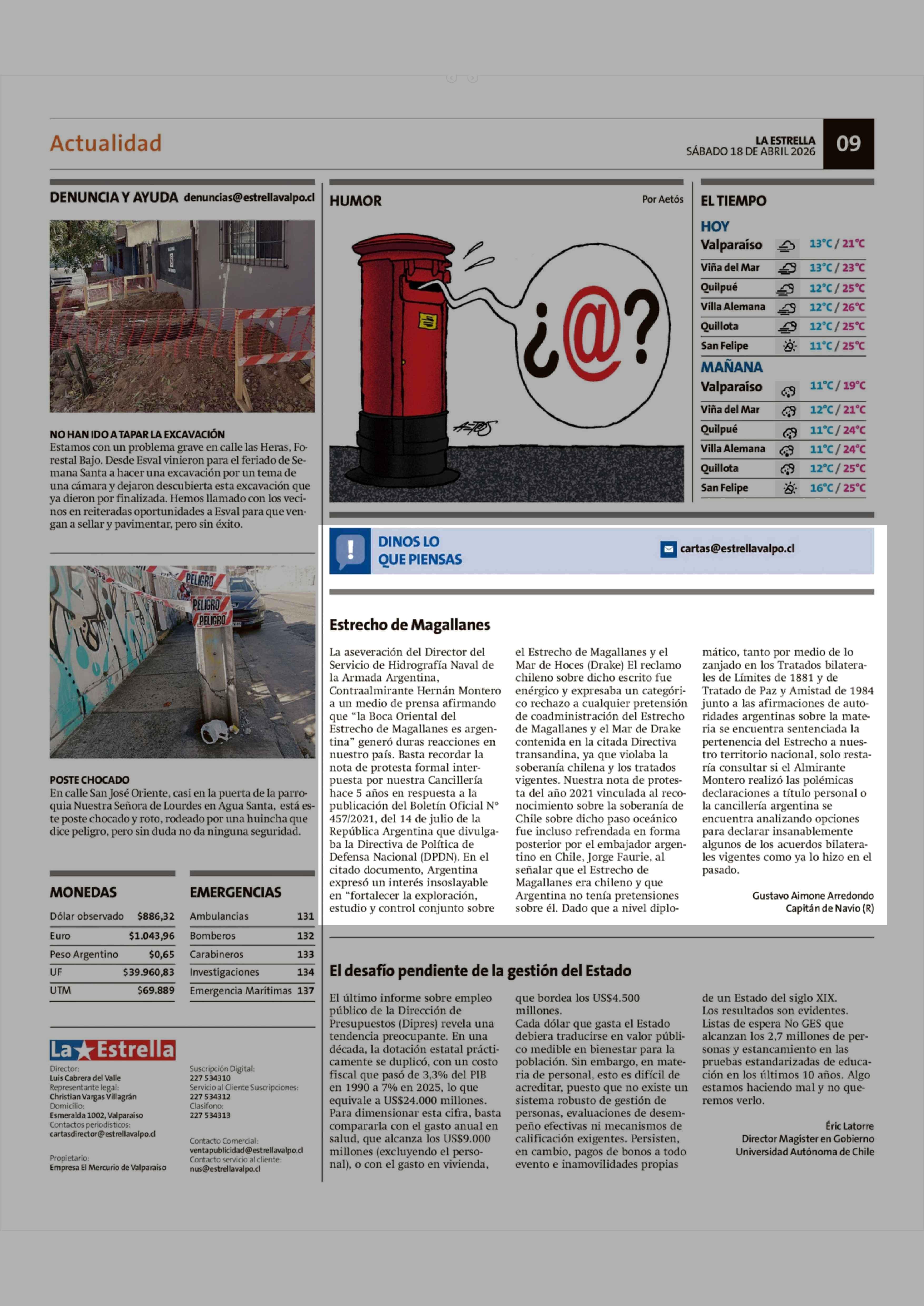 Fuente: La Estrella de Valparaíso (La Estrella de Valparaíso) Página(s): 9