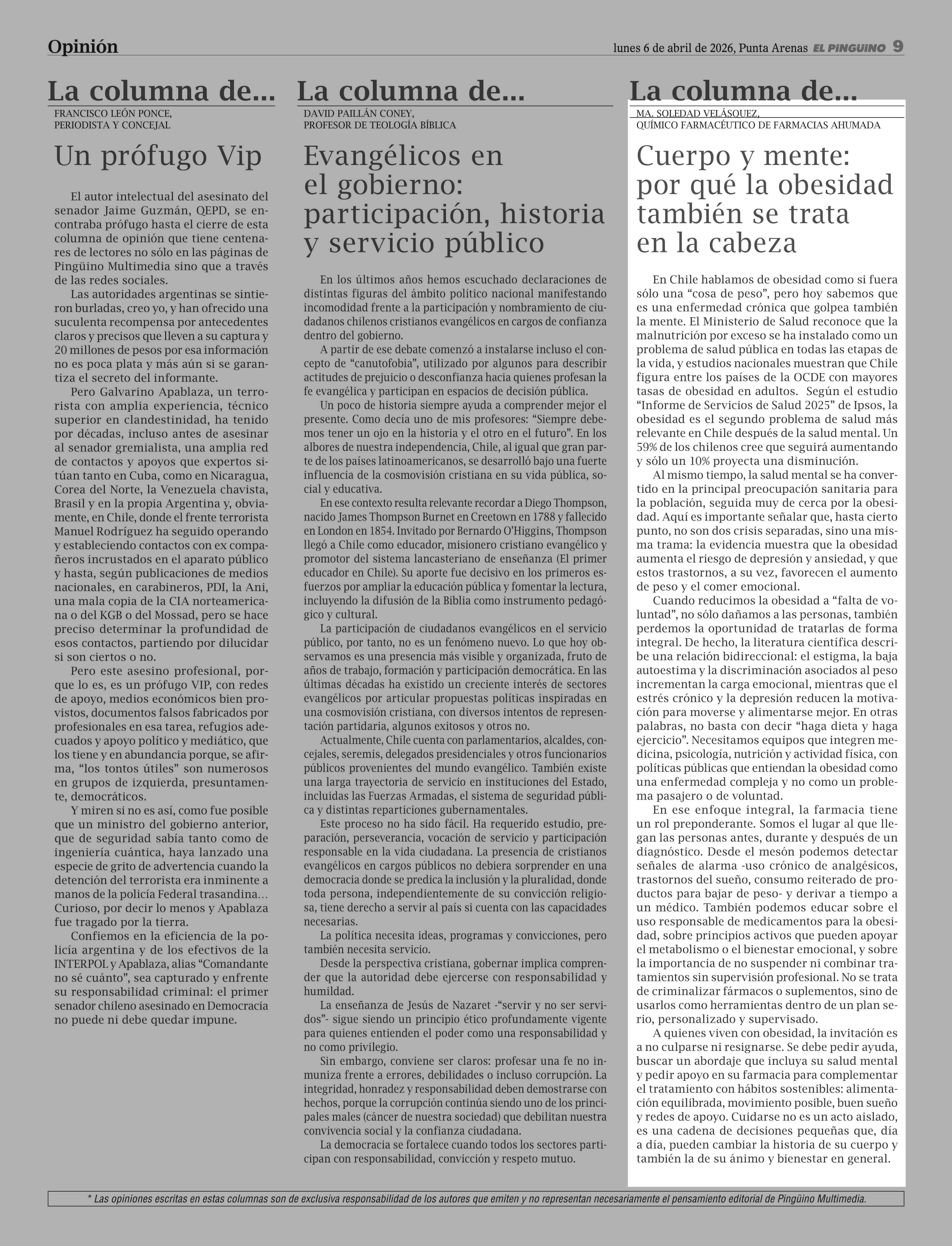 Fecha: 06-04-2026 Sector: Columnas de Opinión Región: Región de Magallanes y de la Antártica Chilena