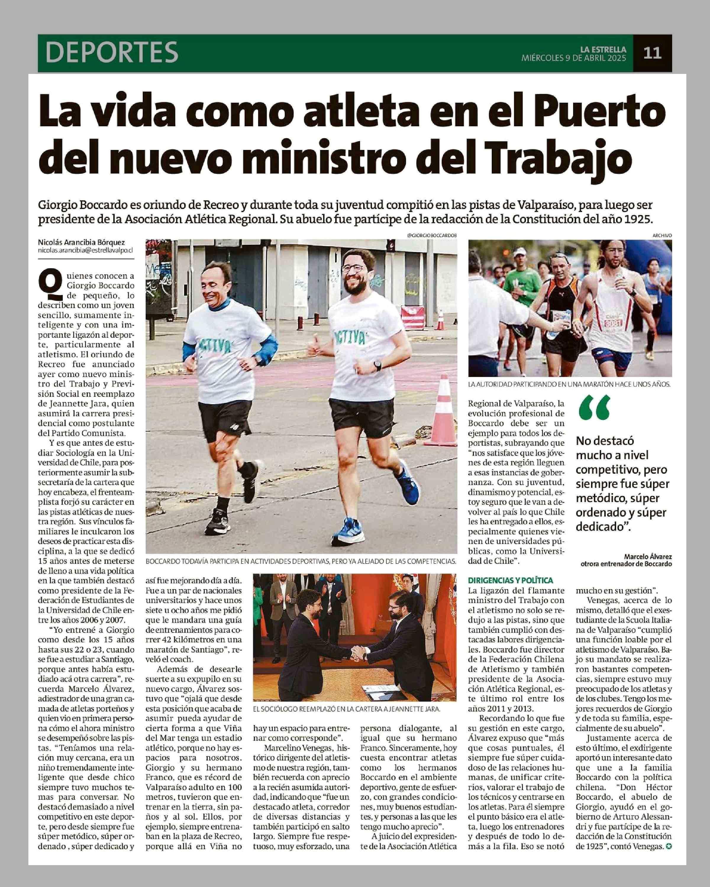 La vida como atleta en el Puerto del nuevo ministro del Trabajo 09-04-2025 La Estrella de Valparaíso |