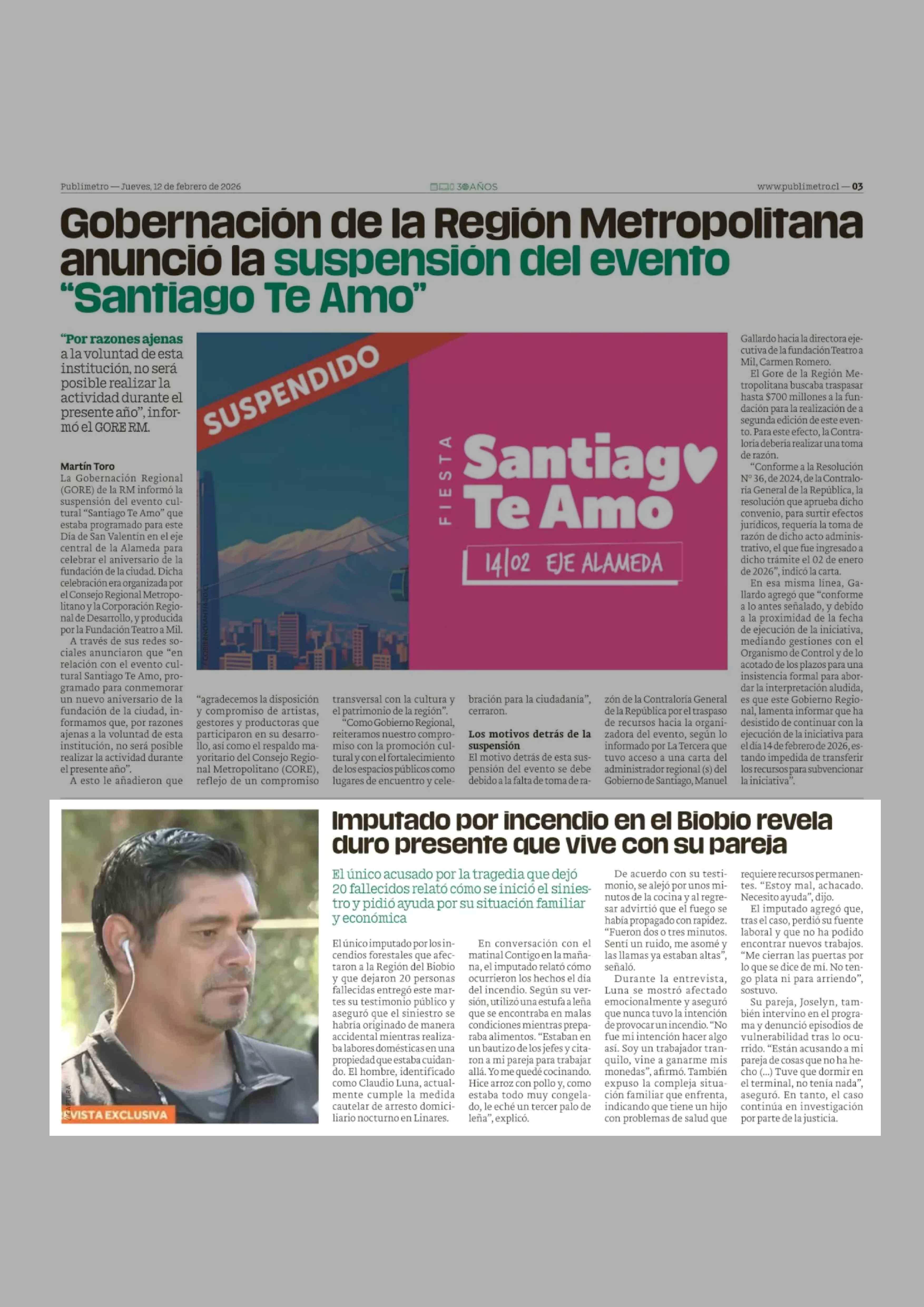 Fecha: 12-02-2026 Sector: Noticia general Región: Región Metropolitana de Santiago