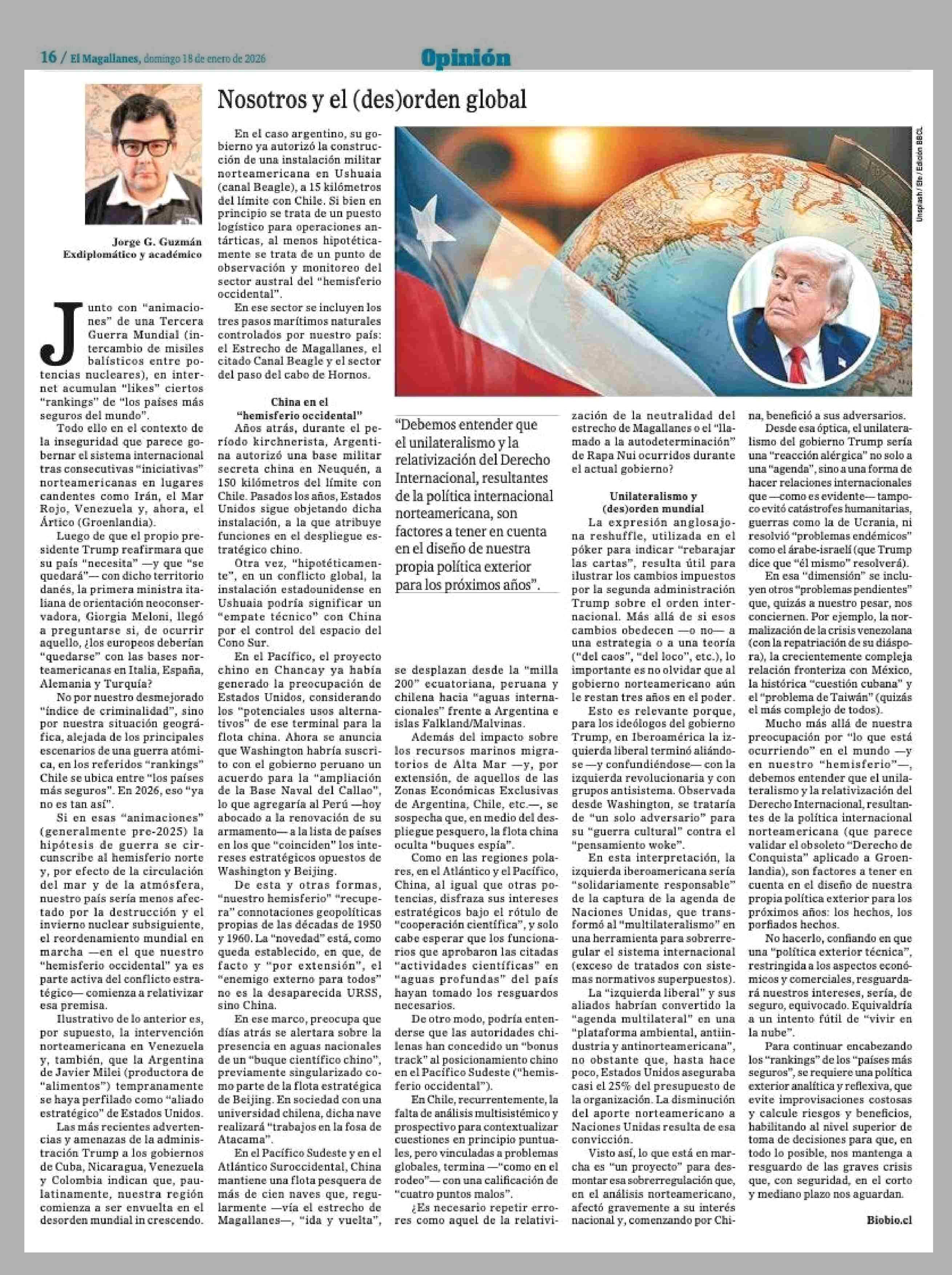 Fecha: 18-01-2026 Sector: Columnas de Opinión Región: Región de Magallanes y de la Antártica Chilena
