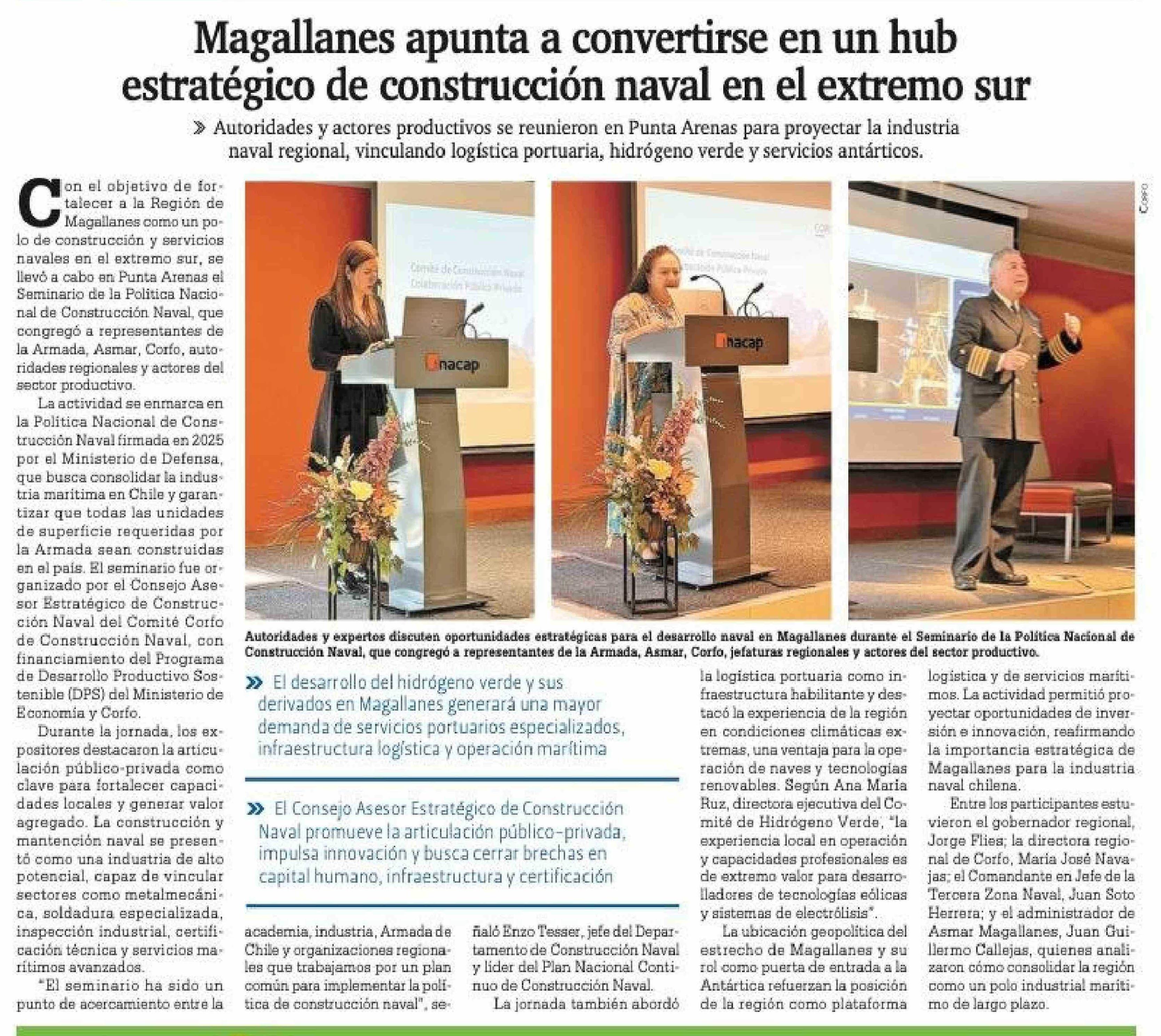 Magallanes apunta a convertirse en un hub estratégico de construcción naval en el extremo sur 28-02-2026 La Prensa Austral |