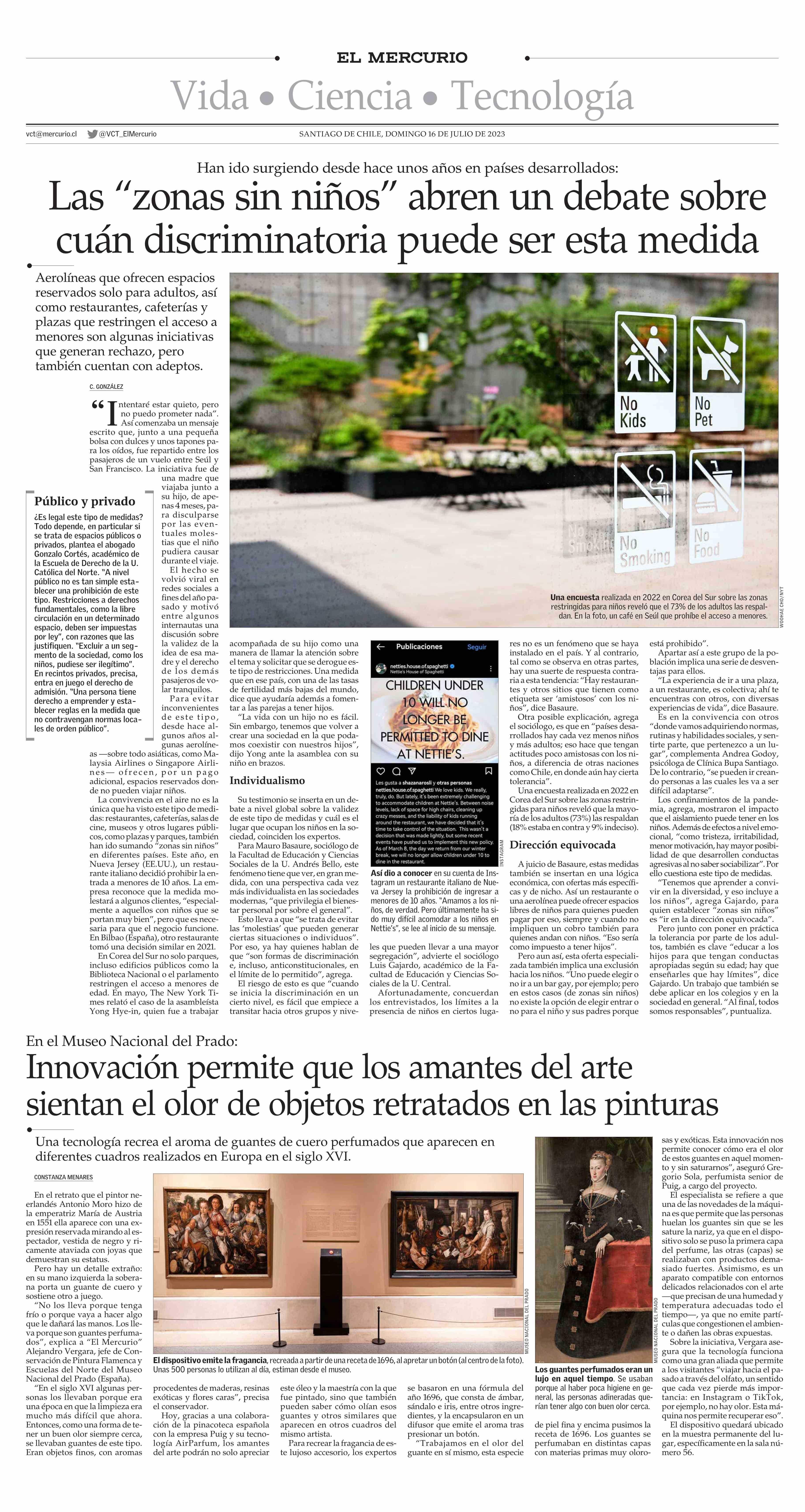 Las "zonas sin niños" abren un debate sobre cuán discriminatoria puede ser esta medida 16-07-2023 El Mercurio |