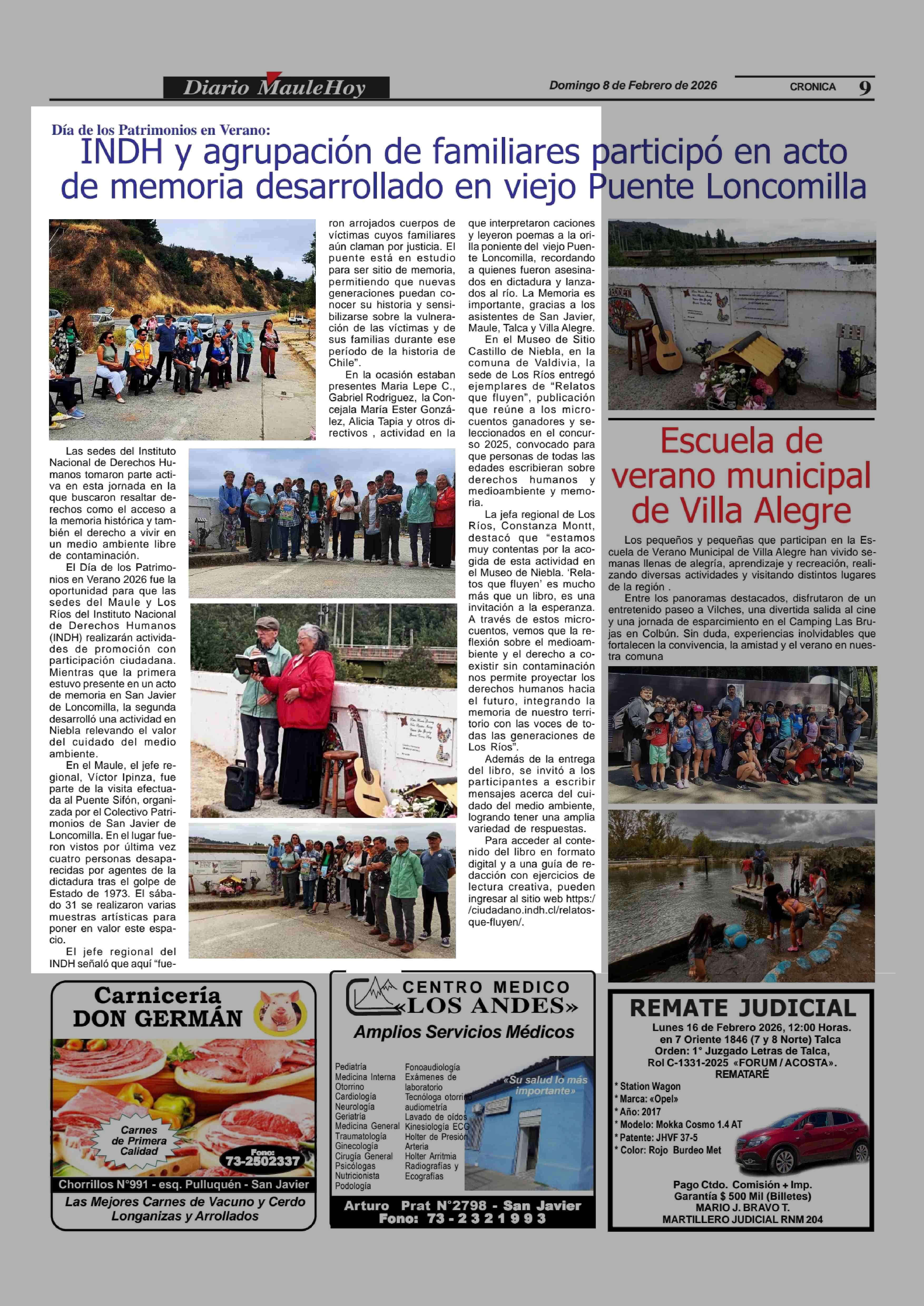 INDH y agrupación de familiares participó en acto de memoria desarrollado en viejo Puente Loncomilla 08-02-2026 Maule Hoy |