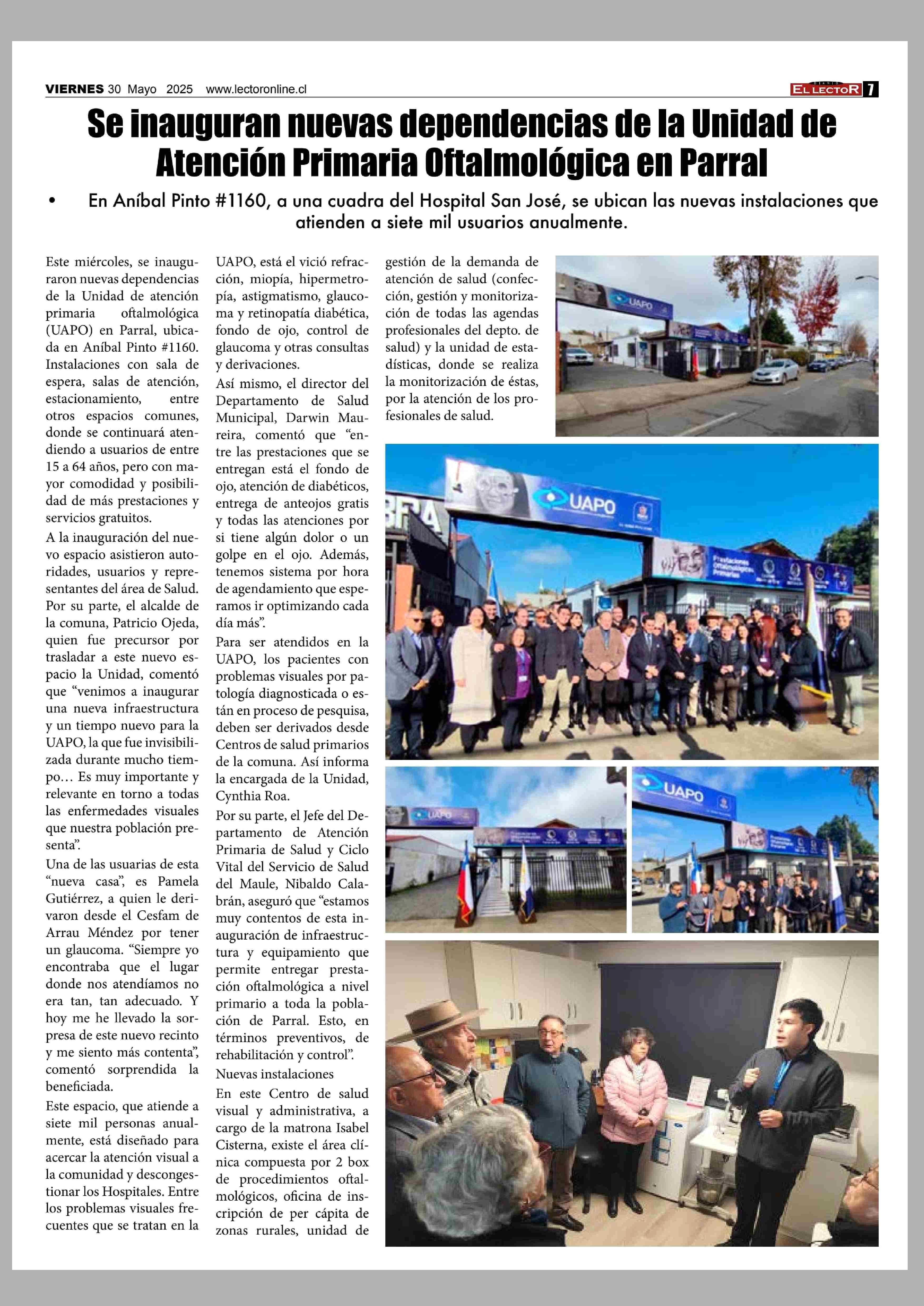 Título: Se inauguran nuevas dependencias de la Unidad de Atención Primaria Oftalmológica en Parral