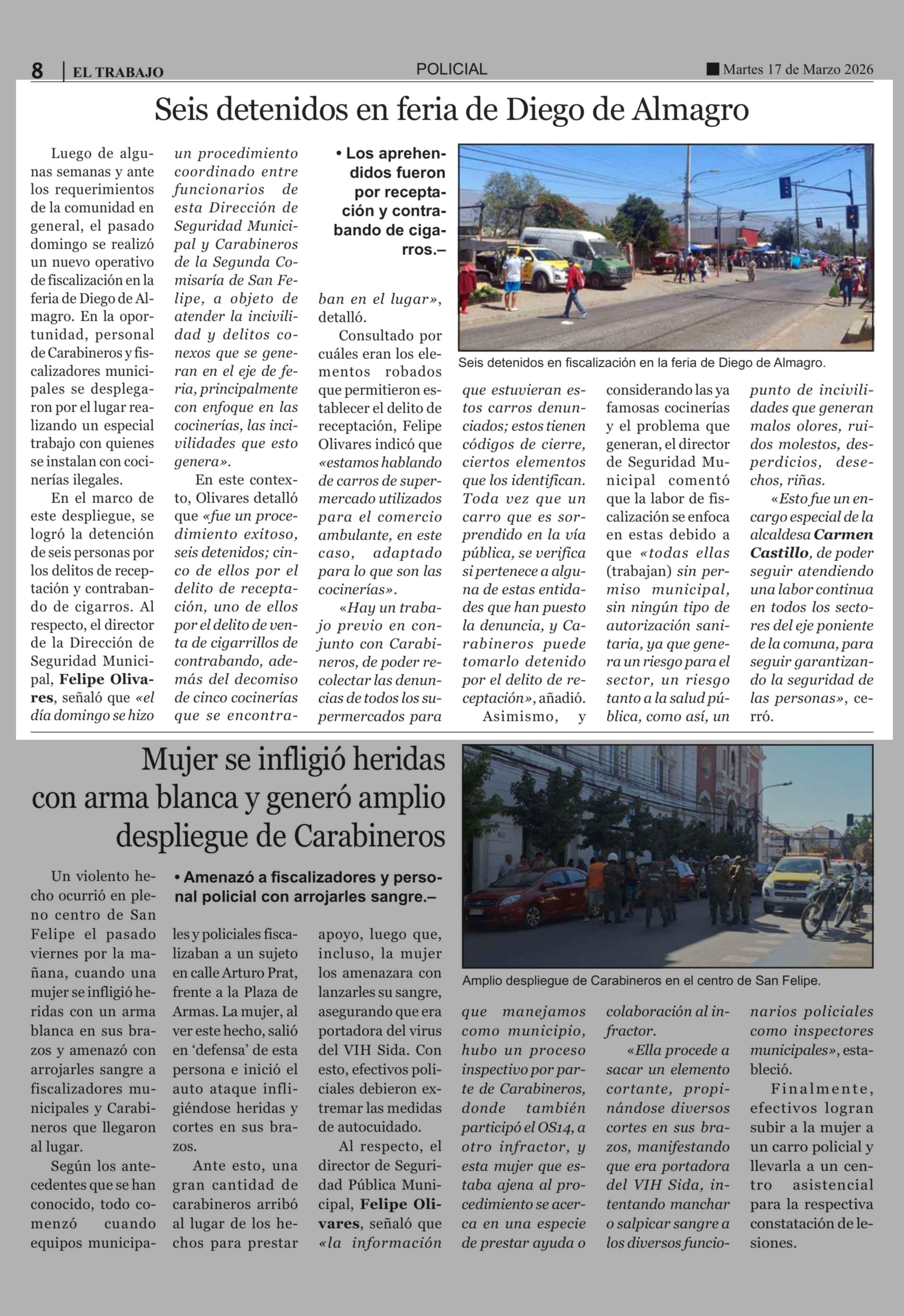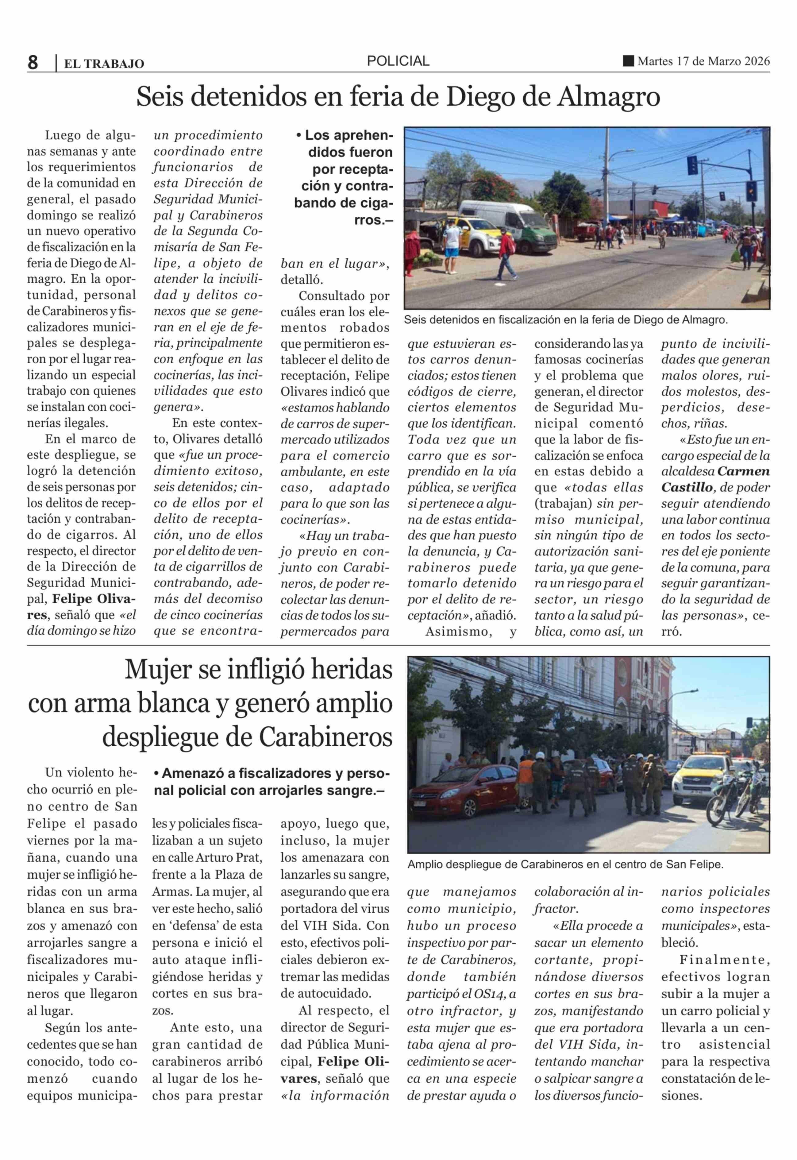 Seis detenidos en feria de Diego de Almagro 17-03-2026 El Trabajo |