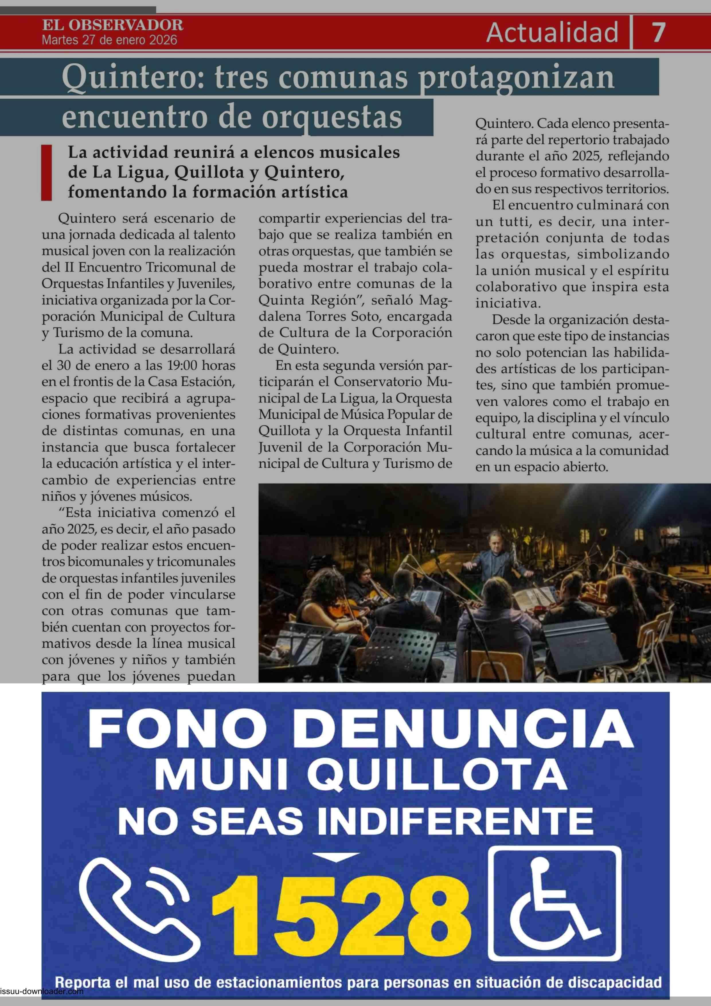 AVISO PUBLICITARIO: MUNI QUILLOTA NO SEAS INDIFERENTE 27-01-2026 El Observador Vespertino |
