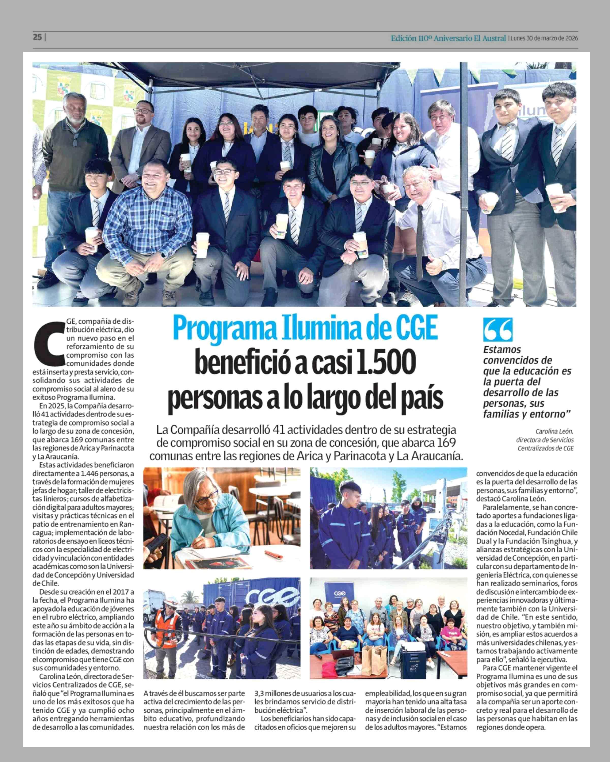 Título: Programa Ilumina de CGE benefició a casi 1.500 personas a lo largo del país