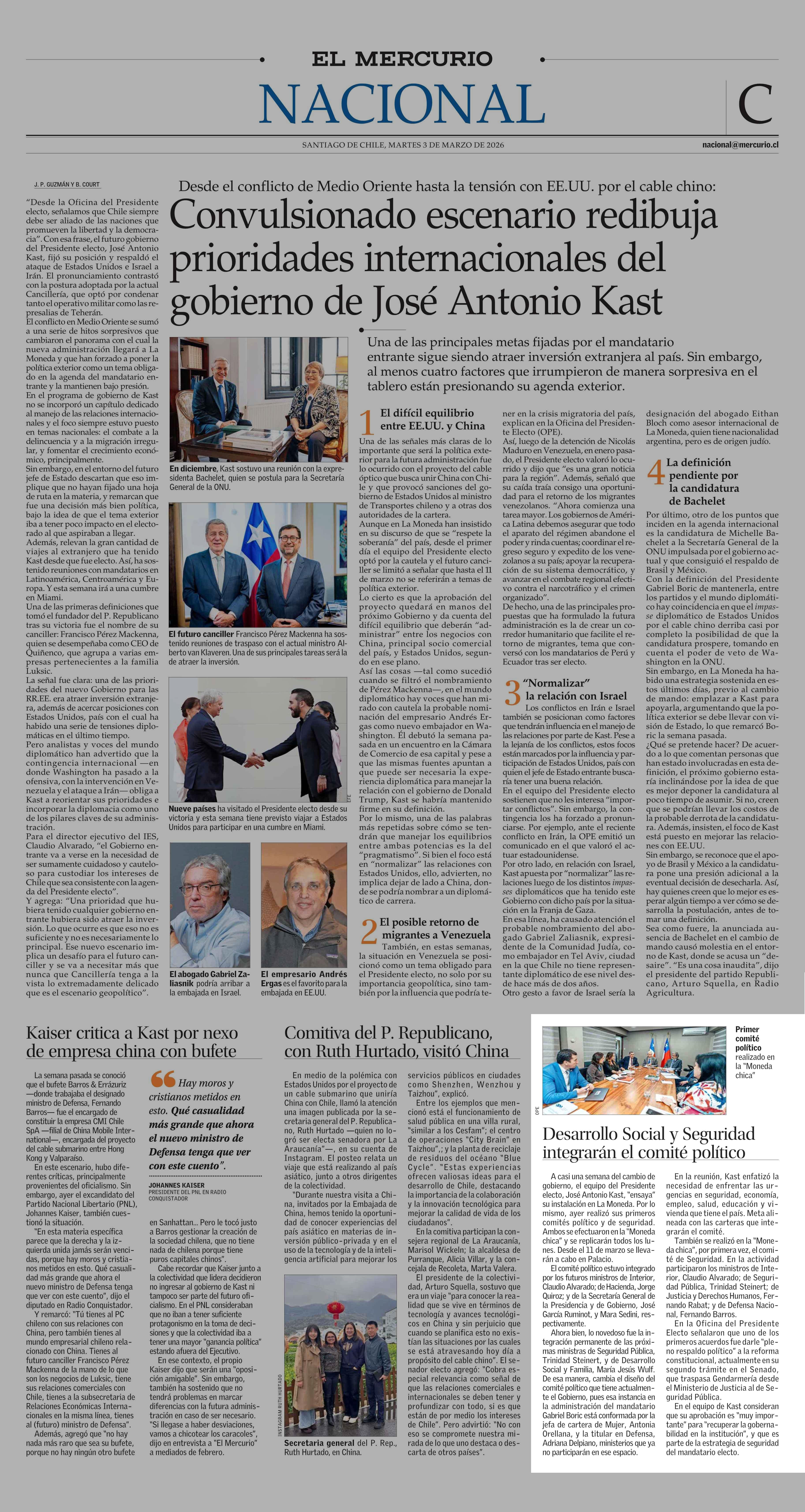 Desarrollo Social y Seguridad integrarán el comité político 03-03-2026 El Mercurio |