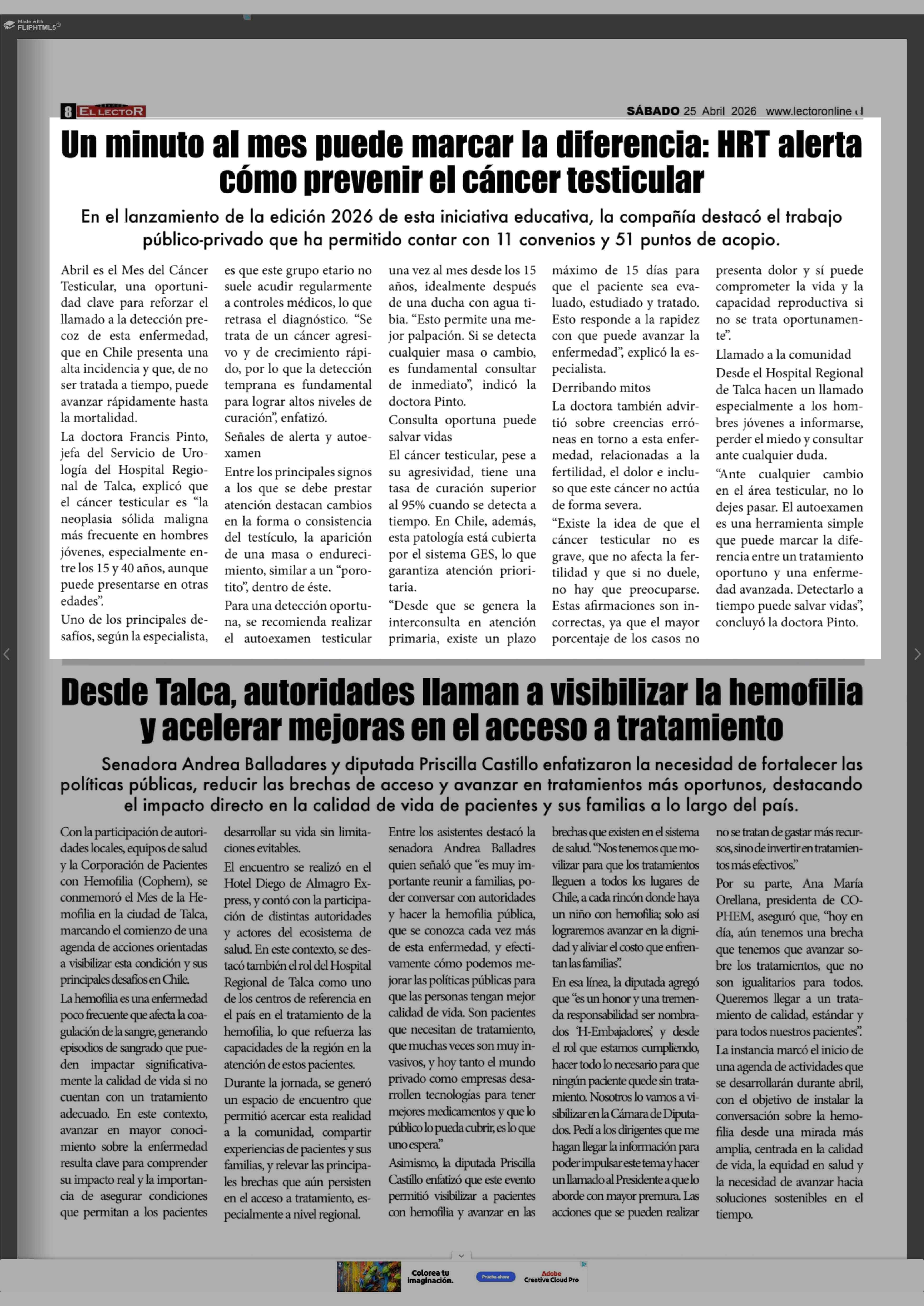 Un minuto al mes puede marcar la diferencia: HRT alerta cómo prevenir el cáncer testicular 25-04-2026 El Lector |