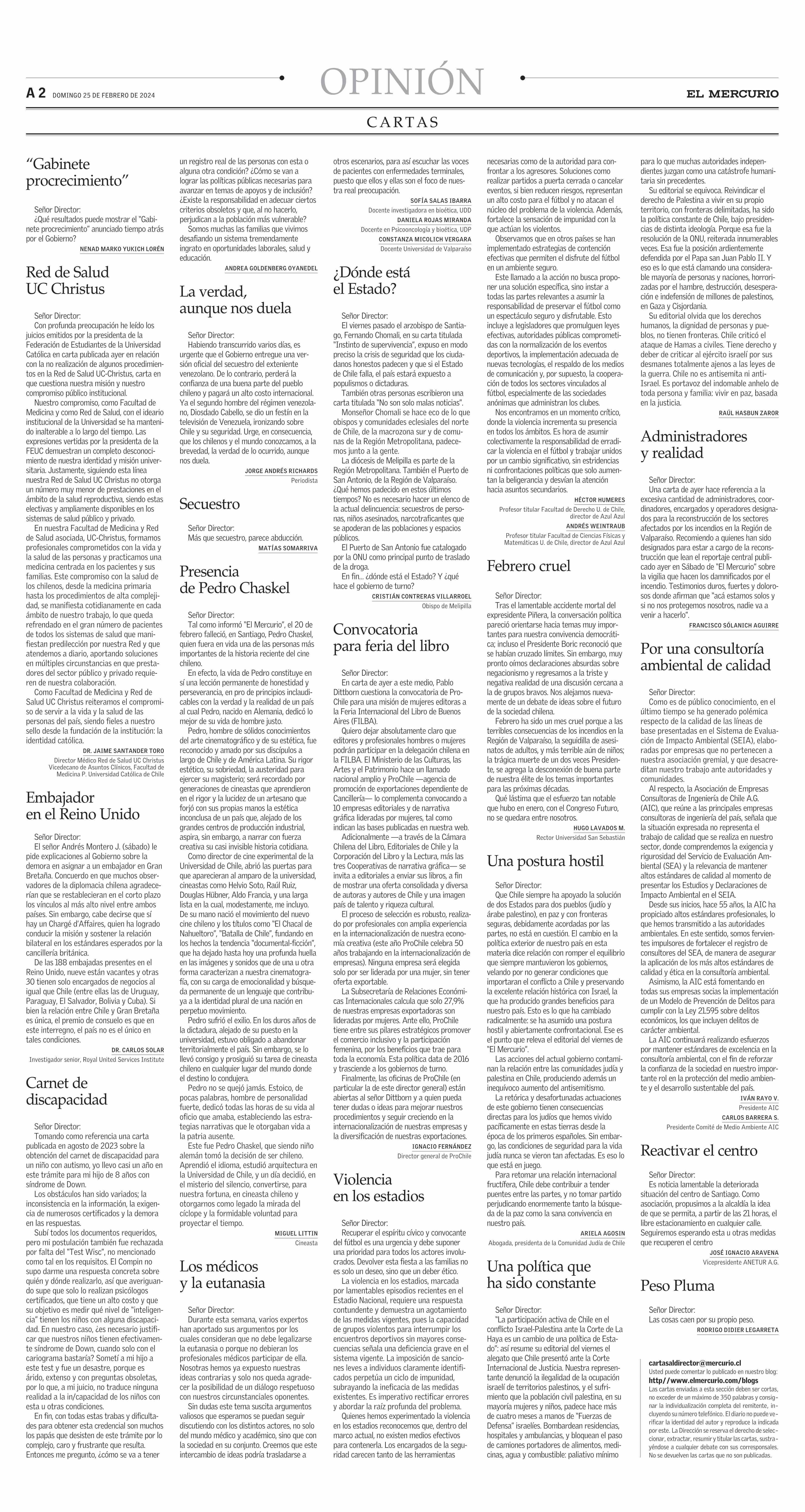 | Fecha: | 25-02-2024 | Sector: | Opinión - Cartas | Región: | Región Metropolitana de Santiago |