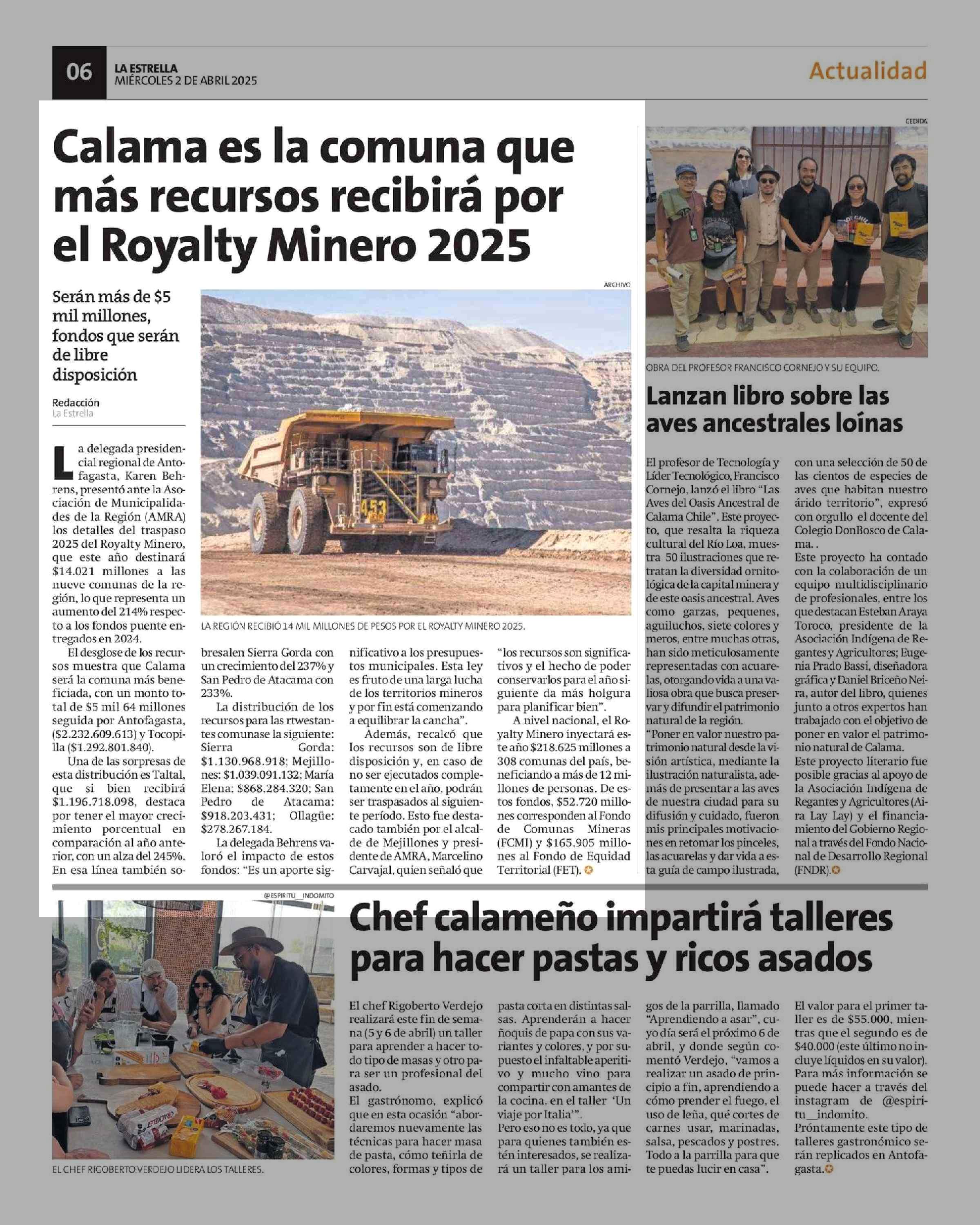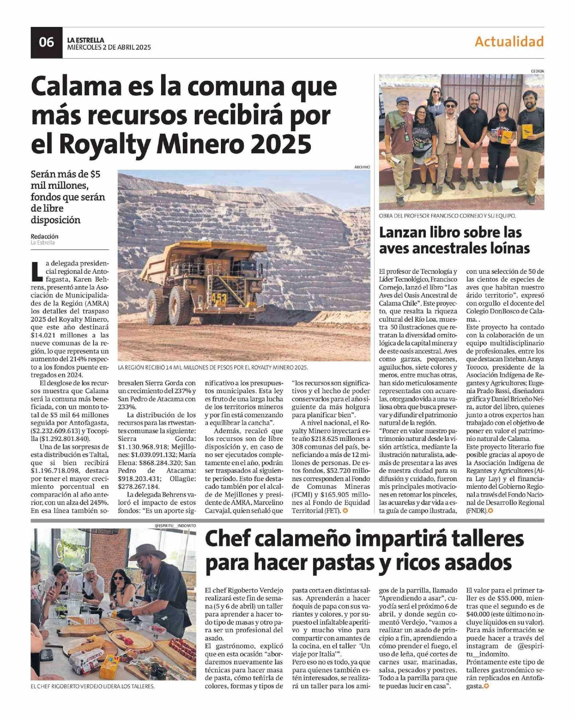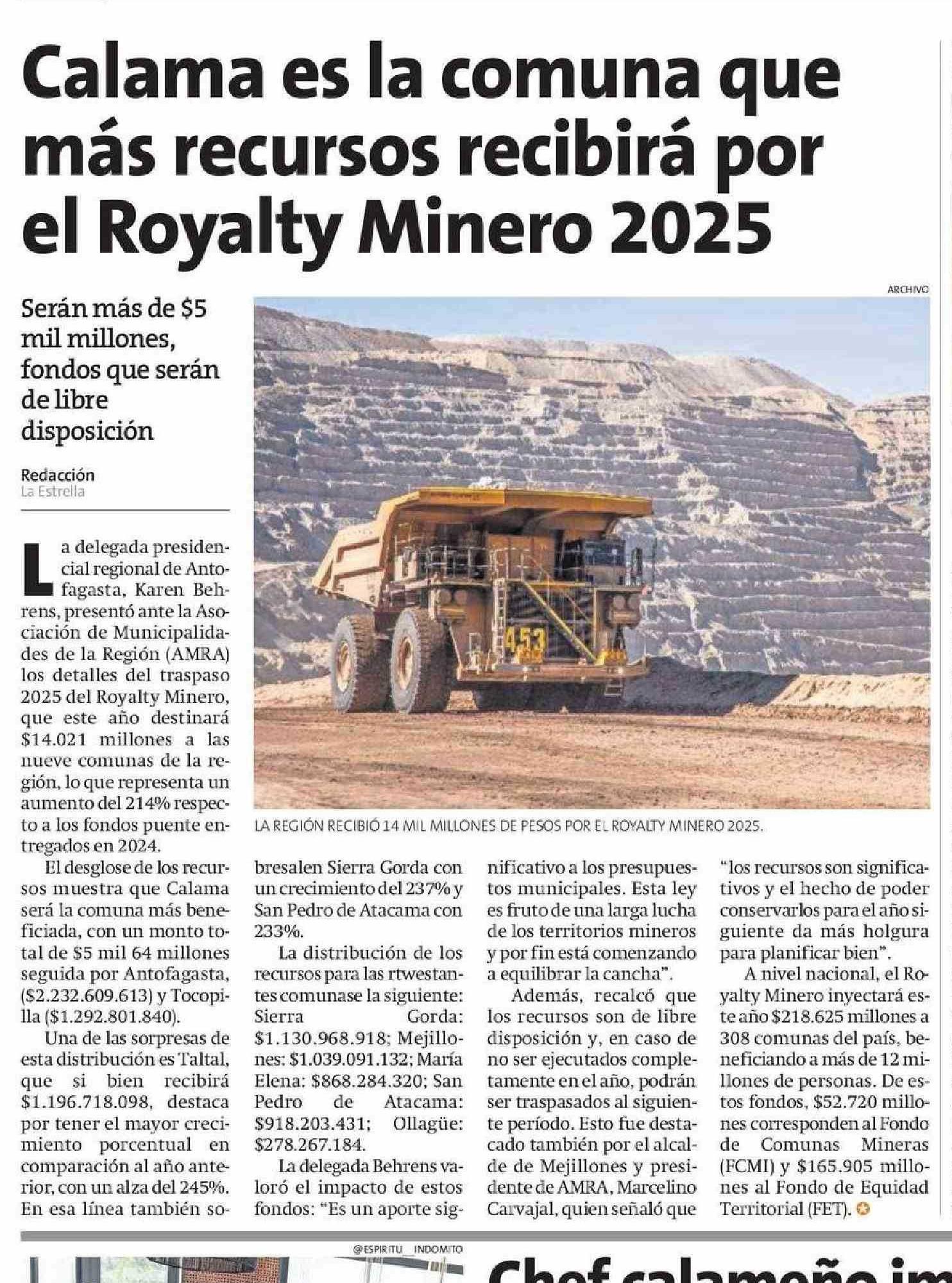 Calama es la comuna que más recursos recibirá por el Royalty Minero 2025 02-04-2025 La Estrella Del Loa |