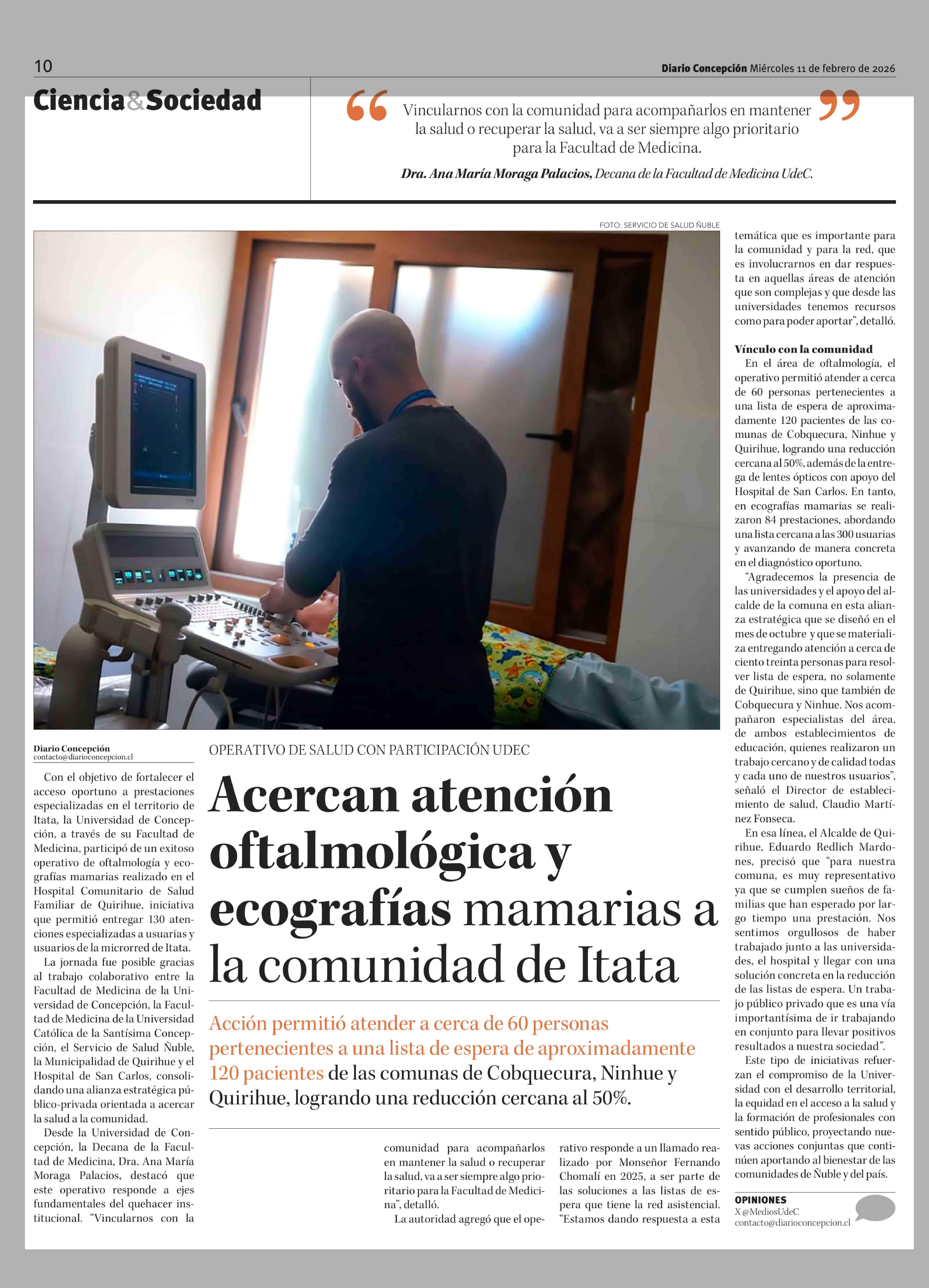 Acercan atención oftalmológica y ecografías mamarias a la comunidad de Itata 11-02-2026 Diario Concepción |