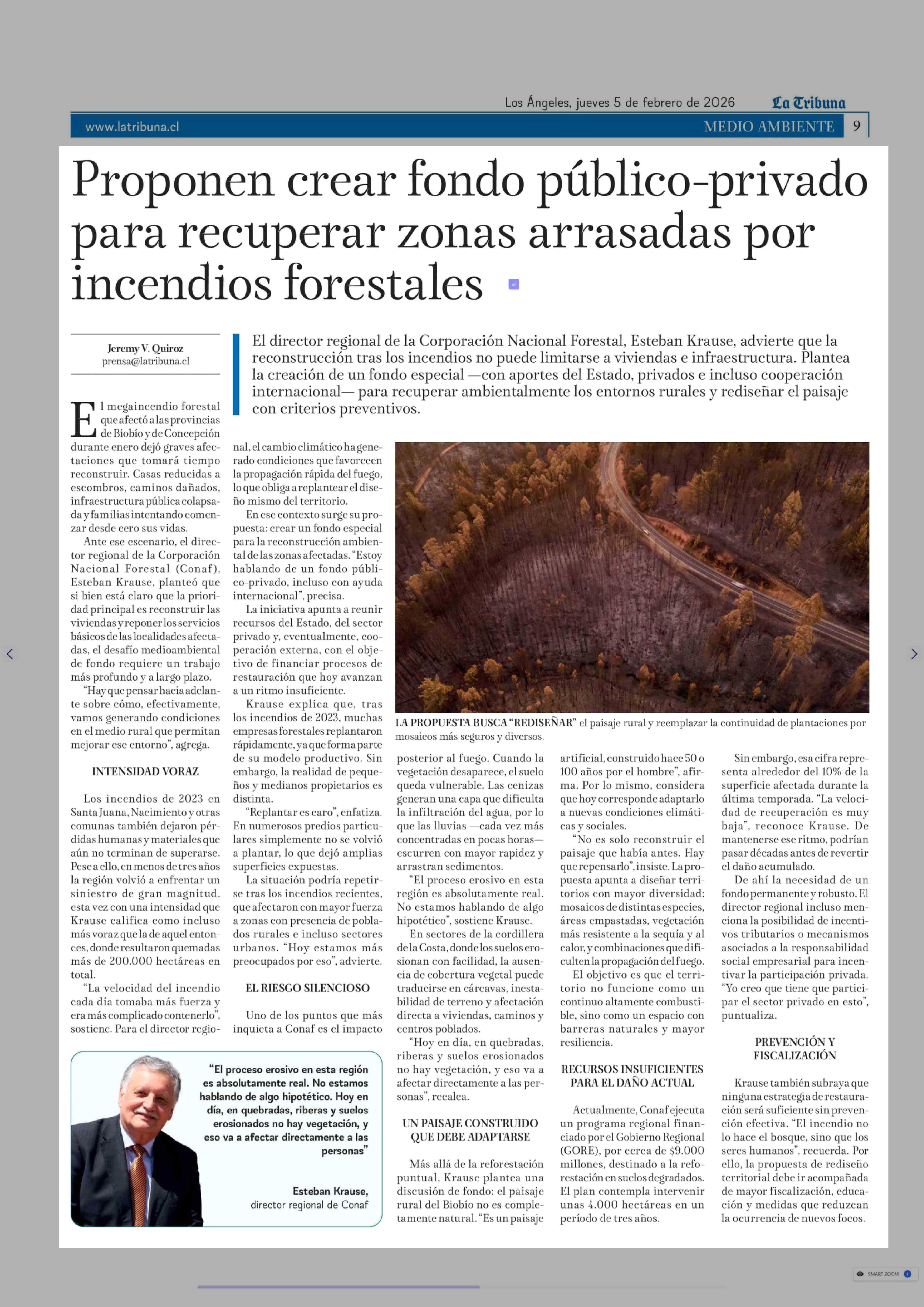 Título: Proponen crear fondo público-privado para recuperar zonas arrasadas por incendios forestales