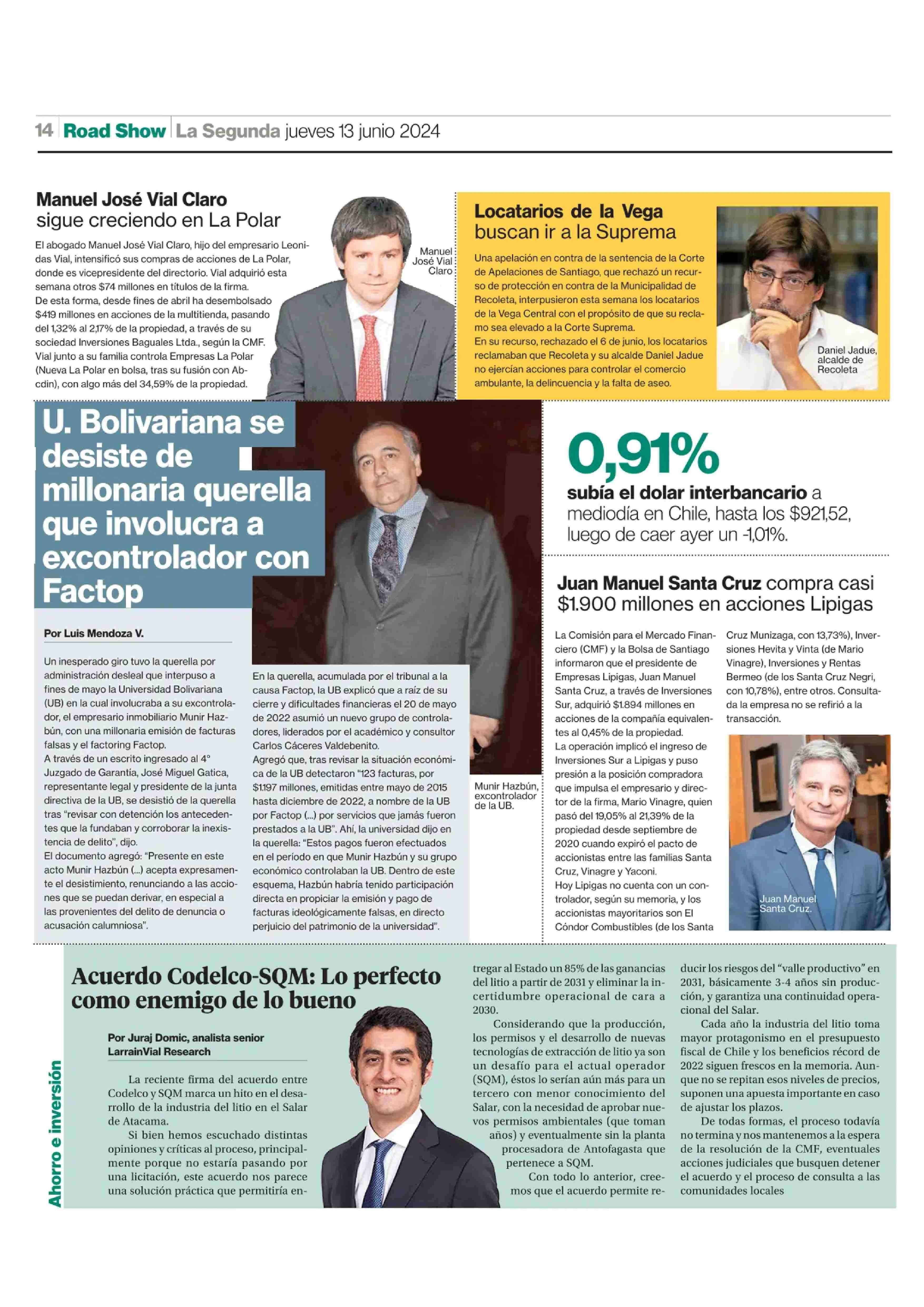 Manuel José Vial Claro sigue creciendo en La Polar 13-06-2024 La Segunda |