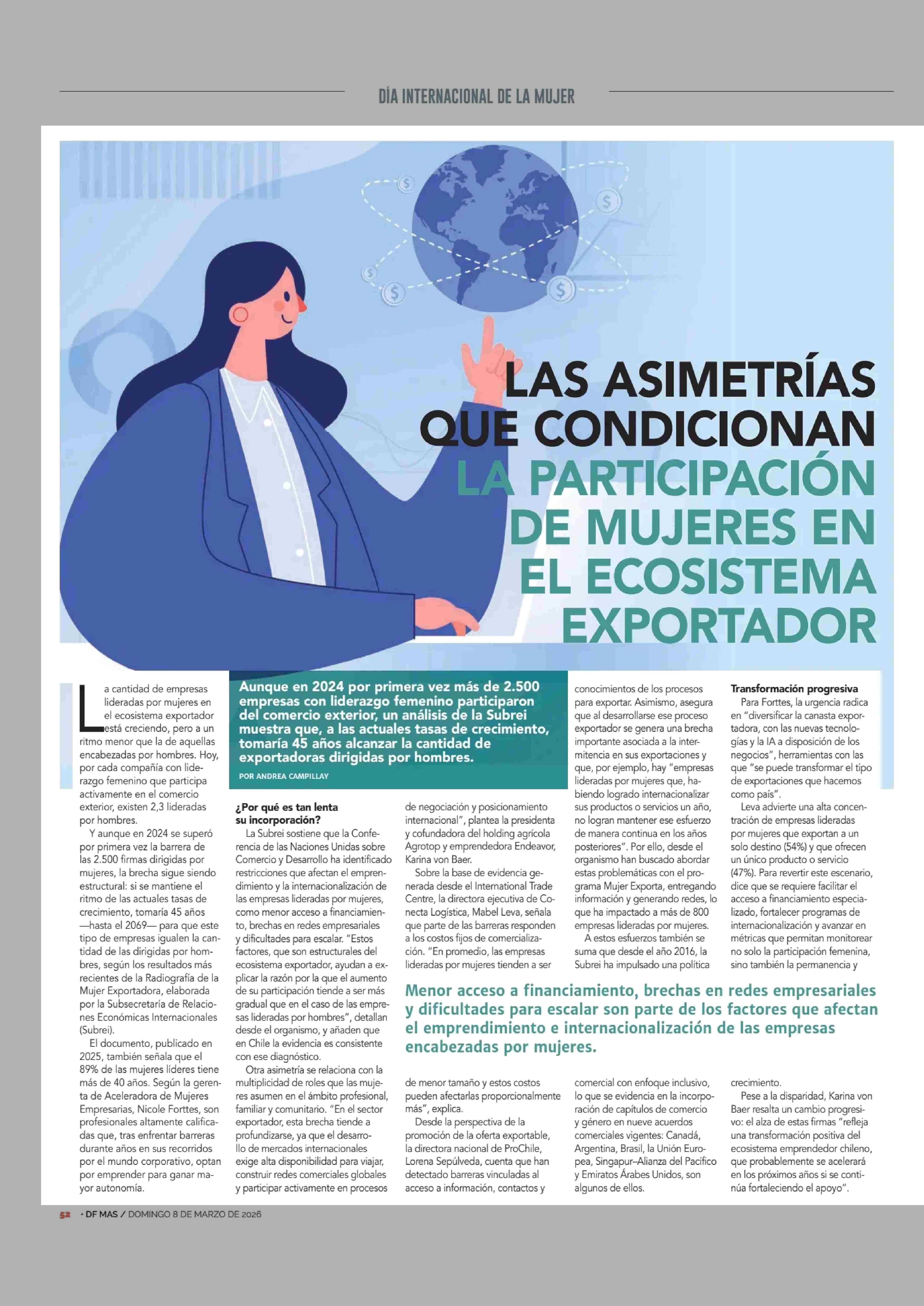 Título: LAS ASIMETRÍAS CONDICIONAN PARTICIPACIÓN DE MUJERES EN EL ECOSISTEMA EXPORTADOR