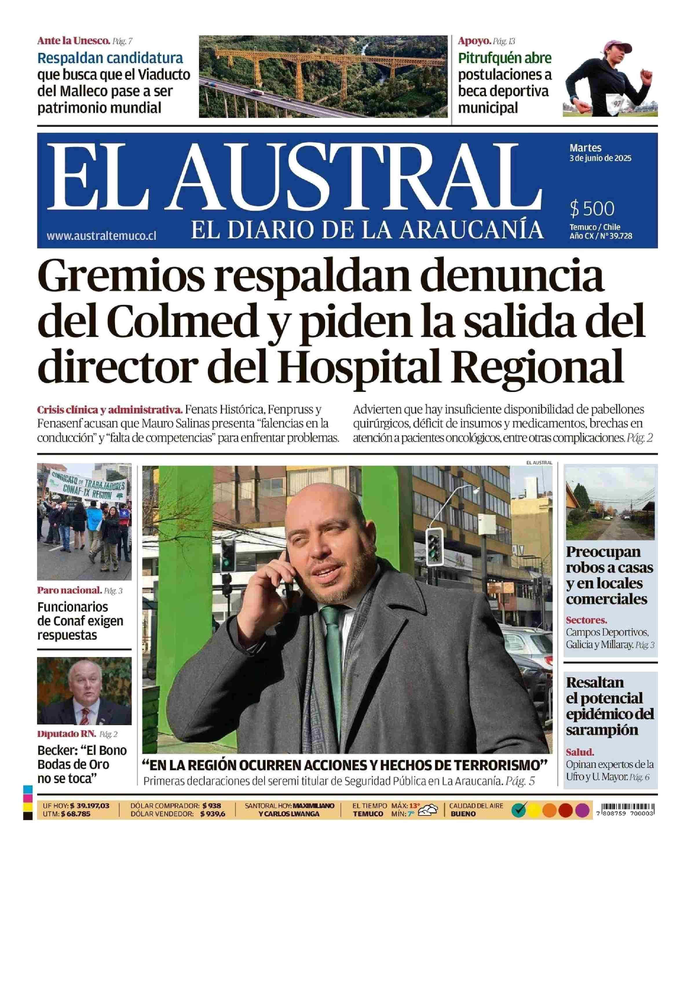 | Fecha: | 03-06-2025 | Sector: | Portada | Región: | Región de la Araucanía |