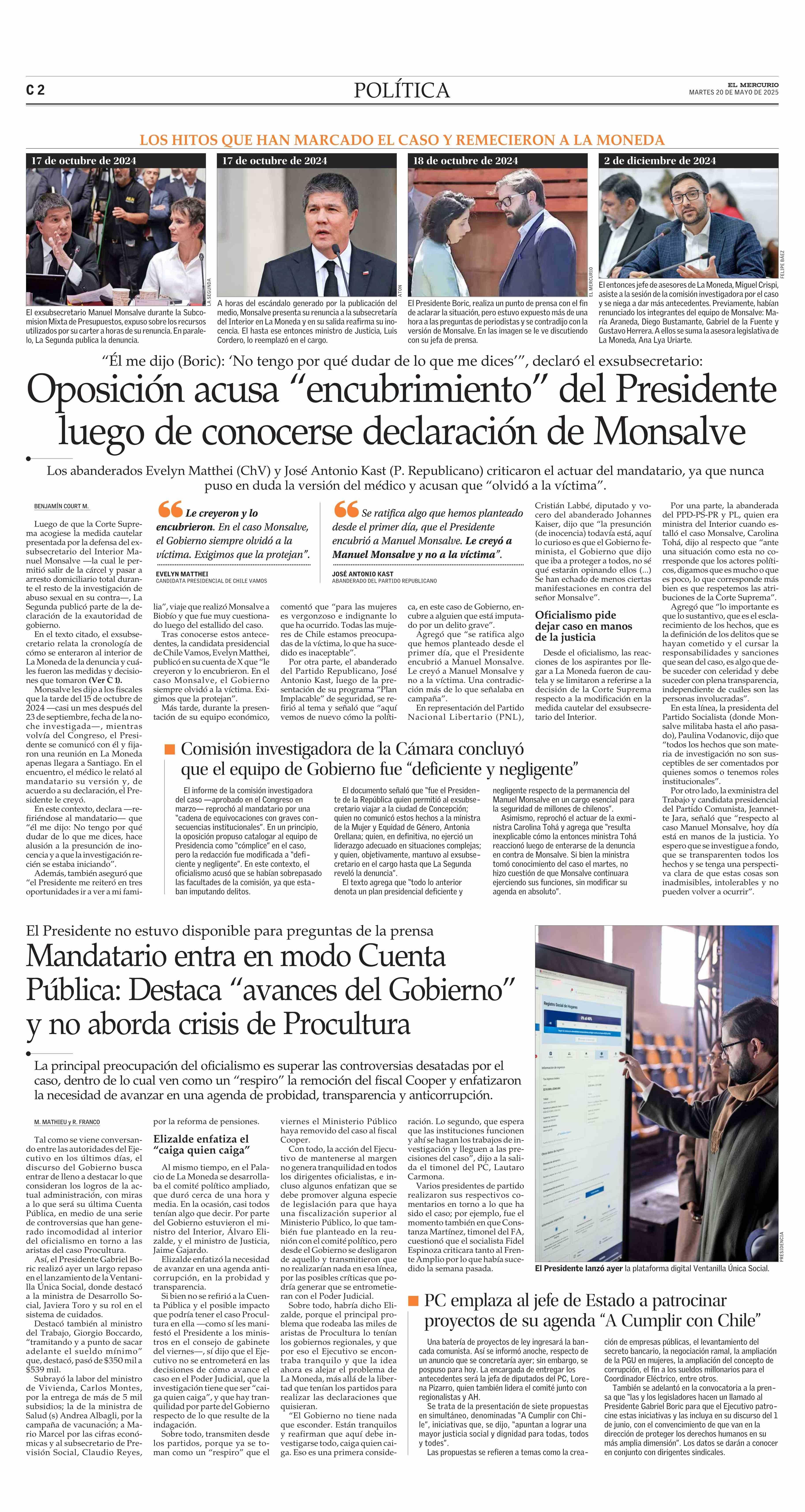 Mandatario entra en modo Cuenta Pública: Destaca “avances del Gobierno” y no aborda crisis de Procultura 20-05-2025 El Mercurio |