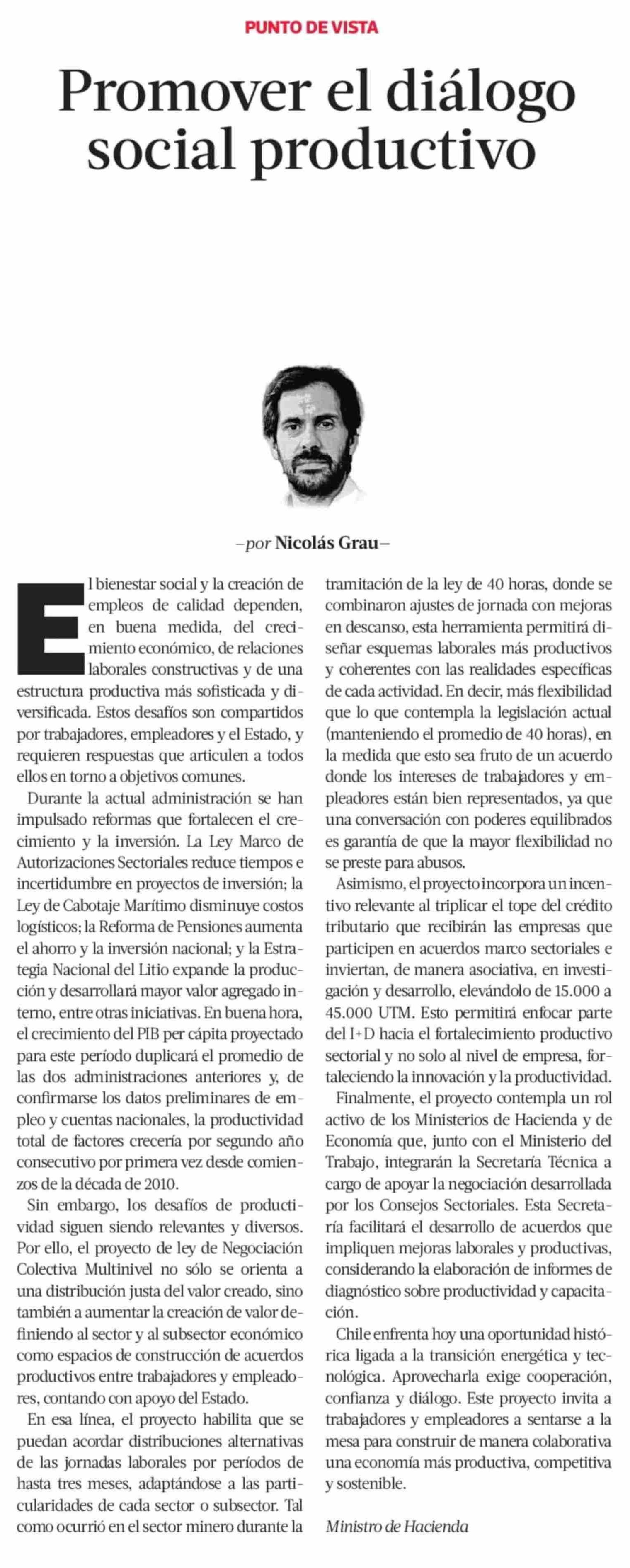 Columnas de Opinión: Promover el diálogo social productivo