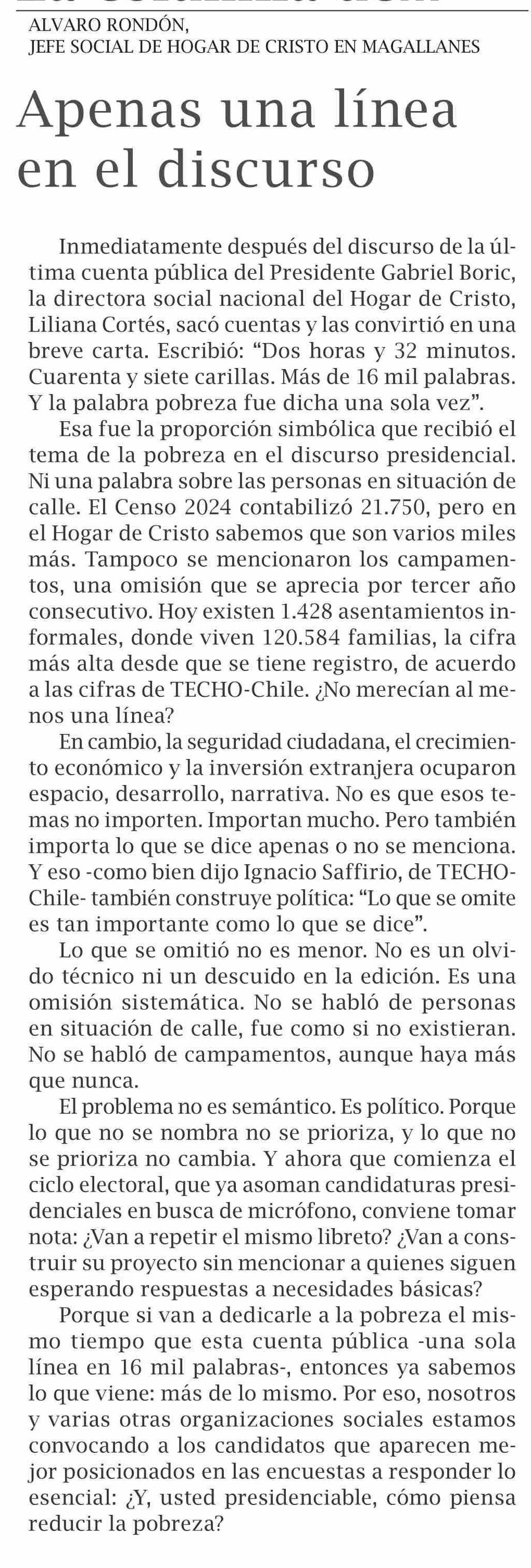 Fecha: 12-06-2025 Sector: Columnas de Opinión Región: Región de Magallanes y de la Antártica Chilena