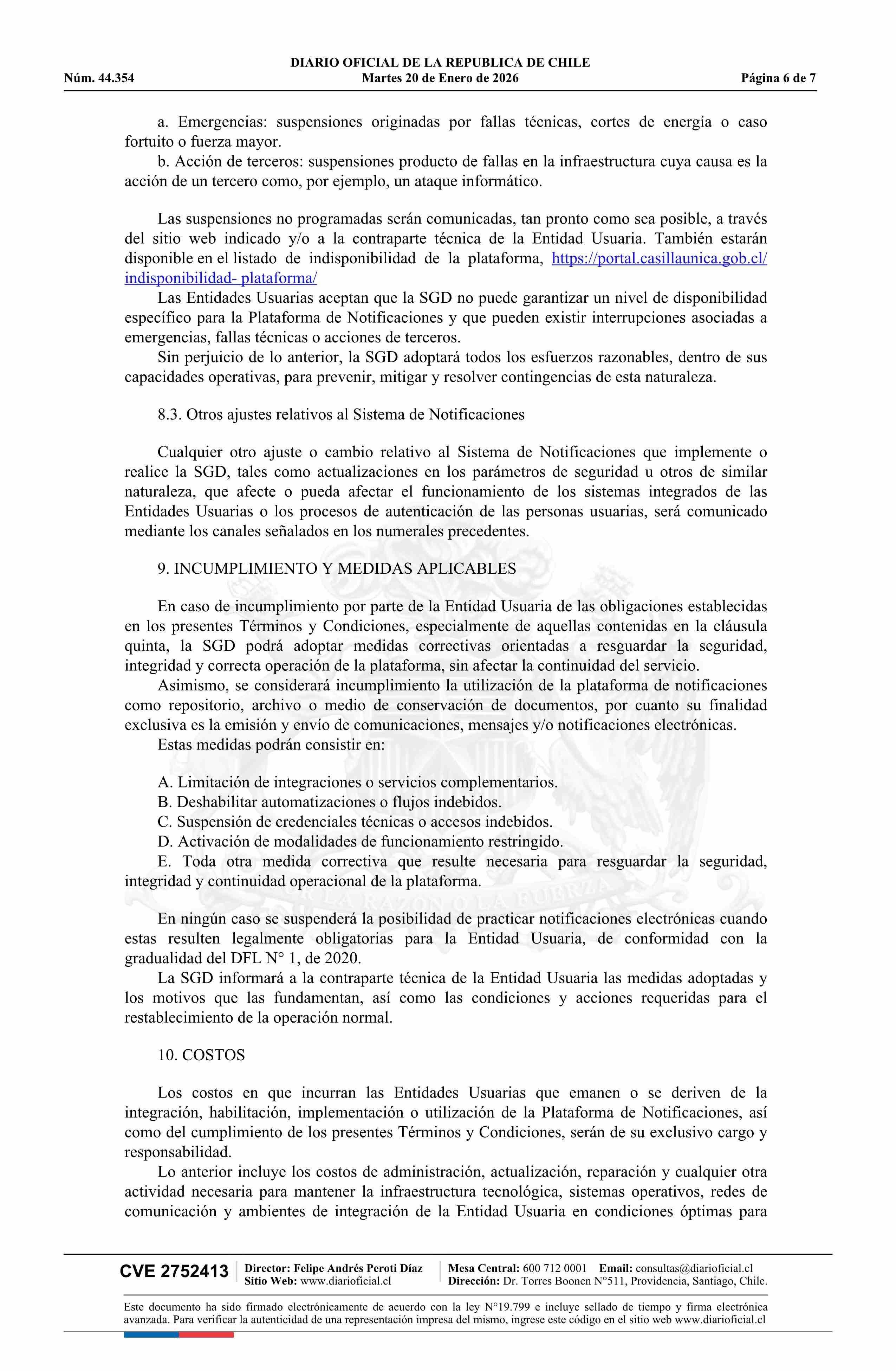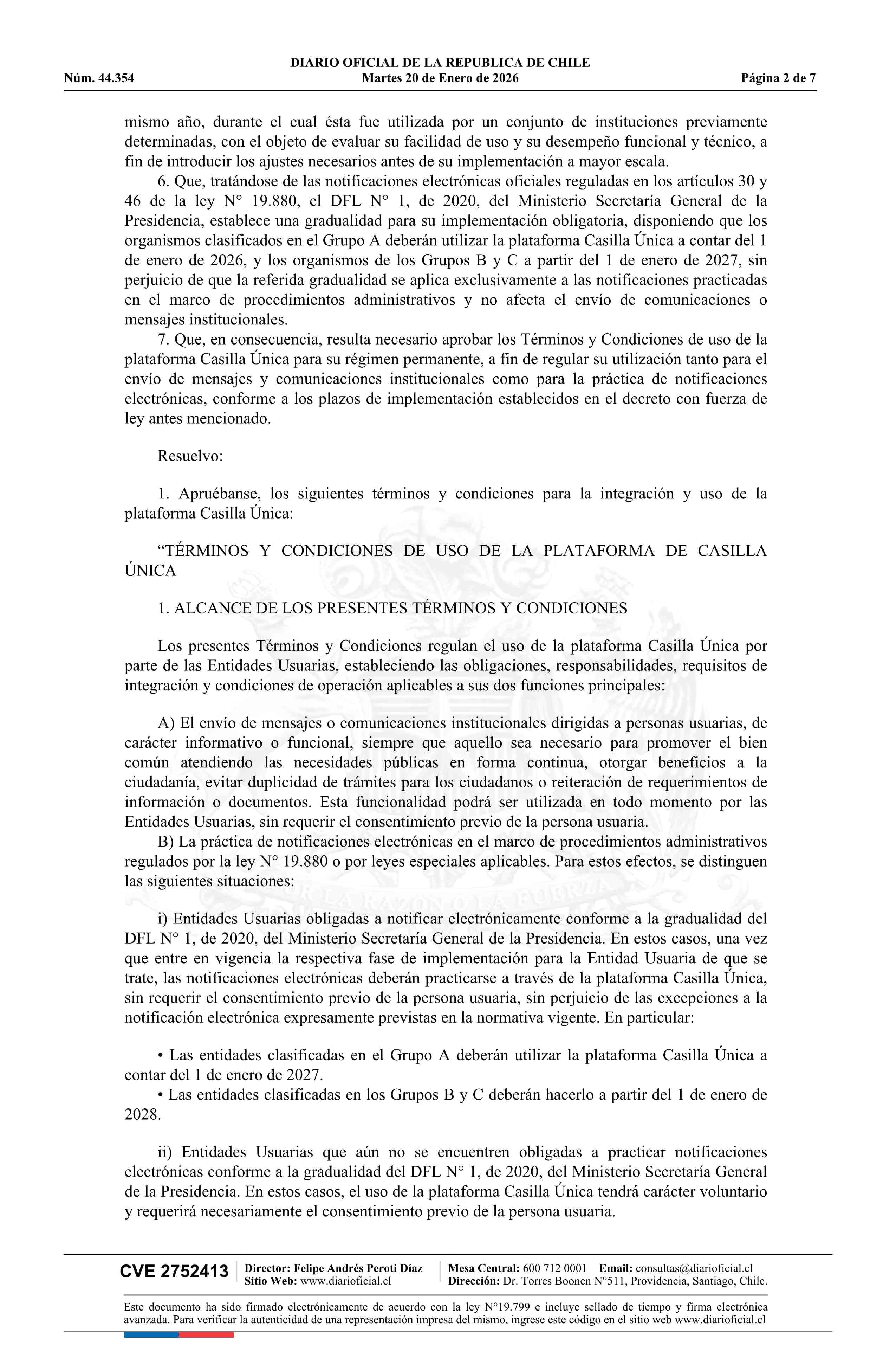 Resolución exenta número 969, de 2025.- Aprueba términos y condiciones de uso de la plataforma Casilla Única 20-01-2026 Diario Oficial Edición Electrónica |