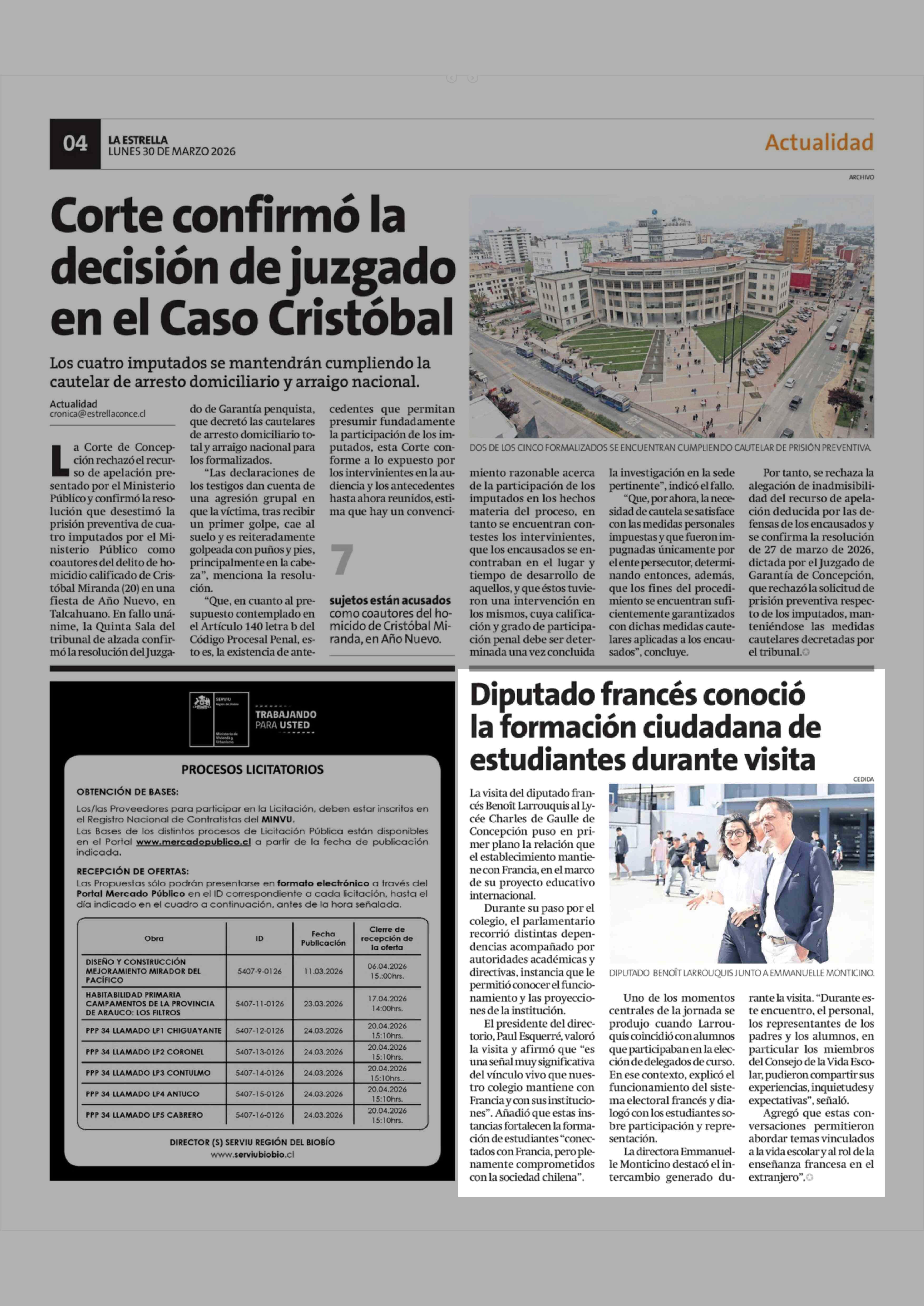 Diputado francés conoció la formación ciudadana de estudiantes durante visita 30-03-2026 La Estrella de Concepción |