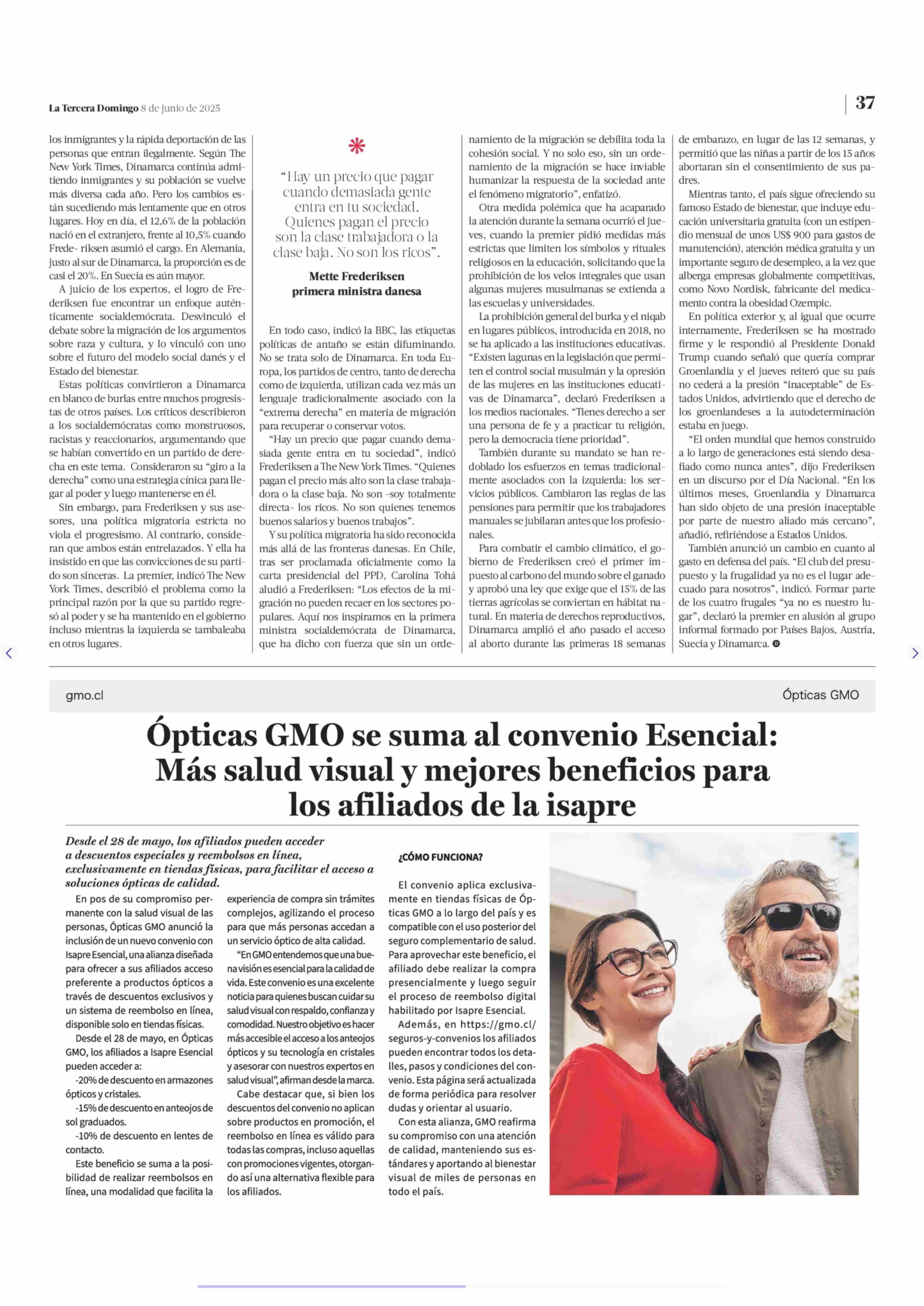 Ópticas GMO se suma al convenio Esencial: Más salud visual y mejores beneficios para los afiliados de la isapre 08-06-2025 La Tercera |
