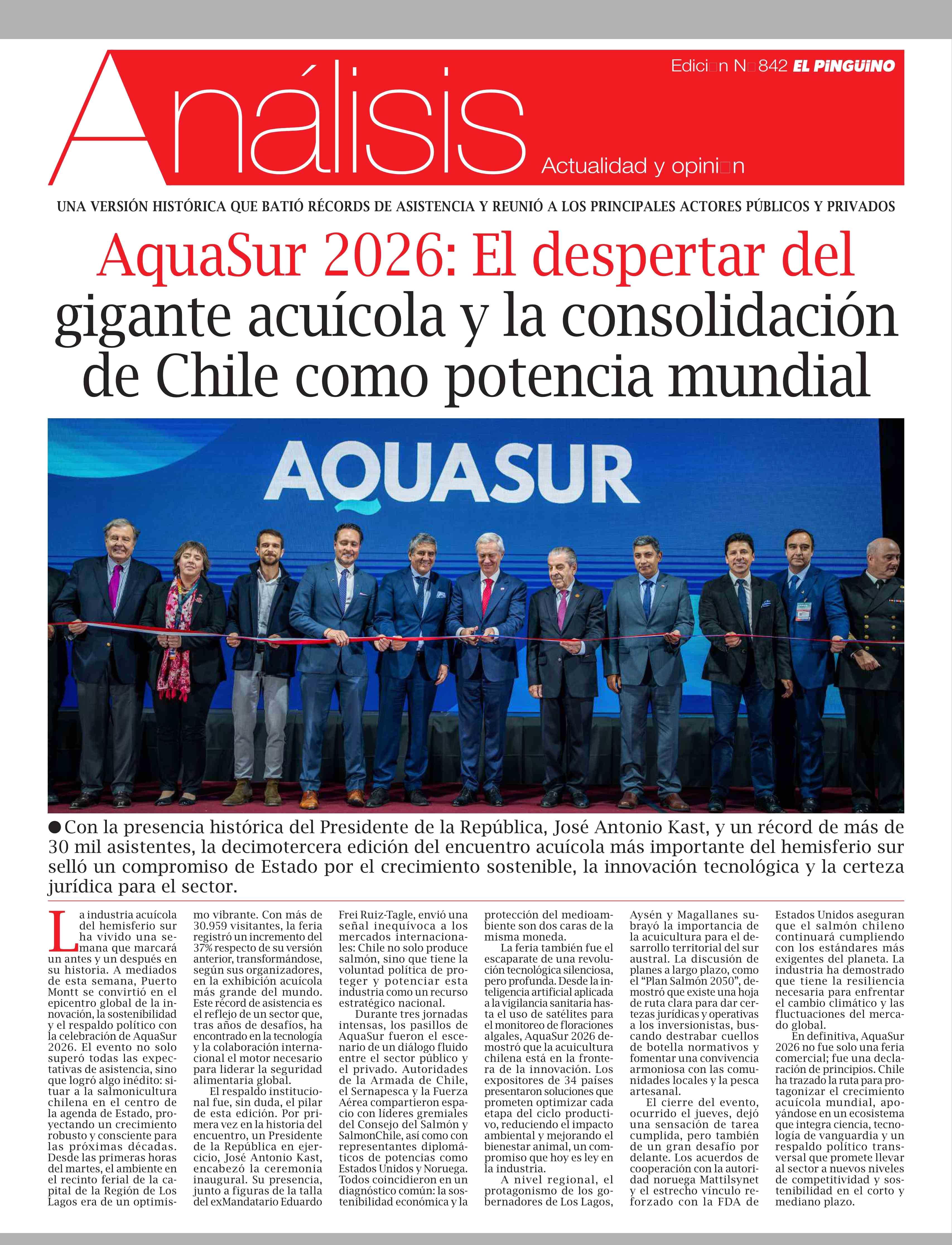 AquaSur 2026: El despertar del gigante acuícola y la consolidación de Chile como potencia mundial 29-03-2026 El Pingüino |
