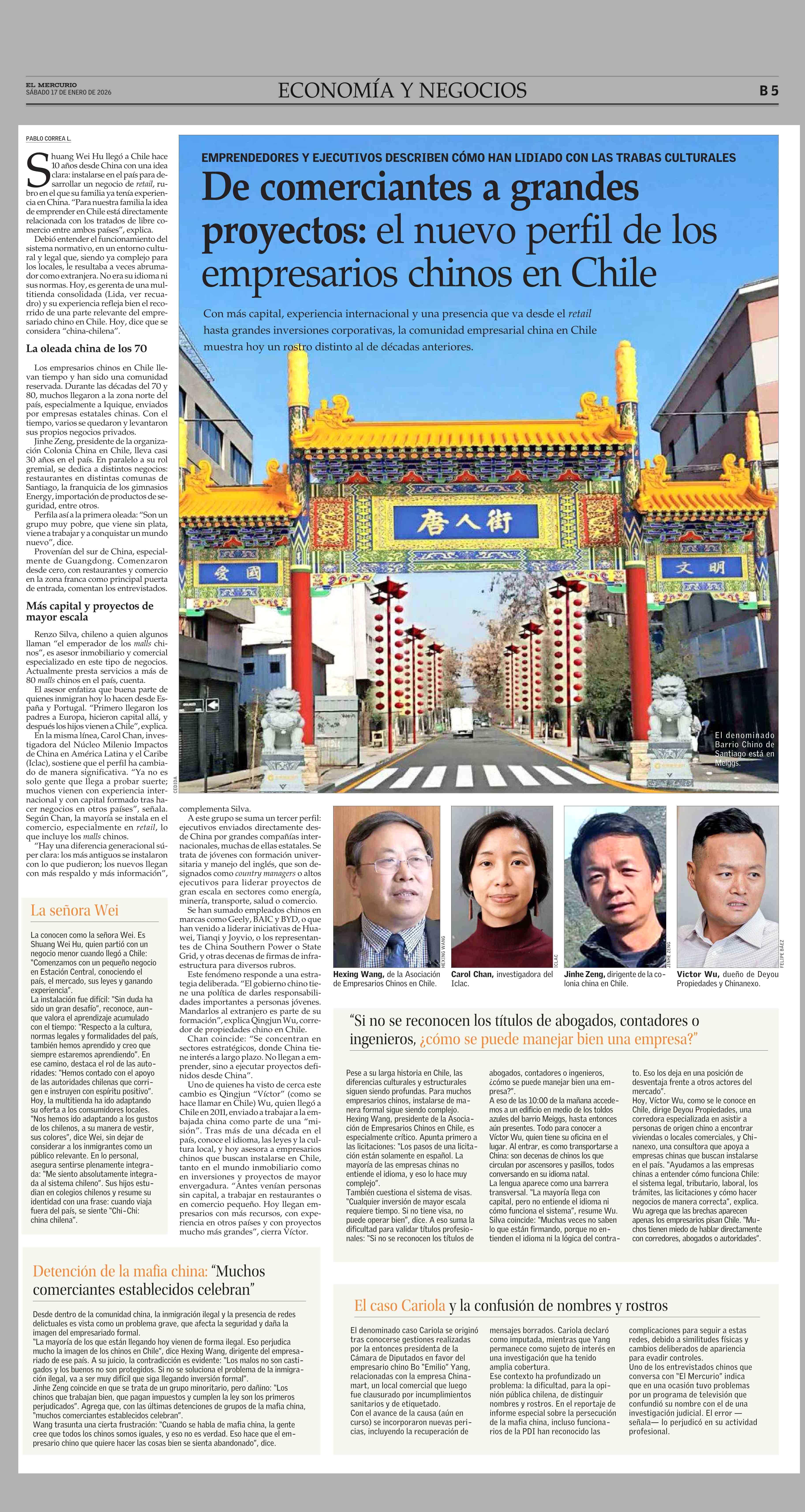 De comerciantes a grandes proyectos: el nuevo perfil de los empresarios chinos en Chile 17-01-2026 El Mercurio |