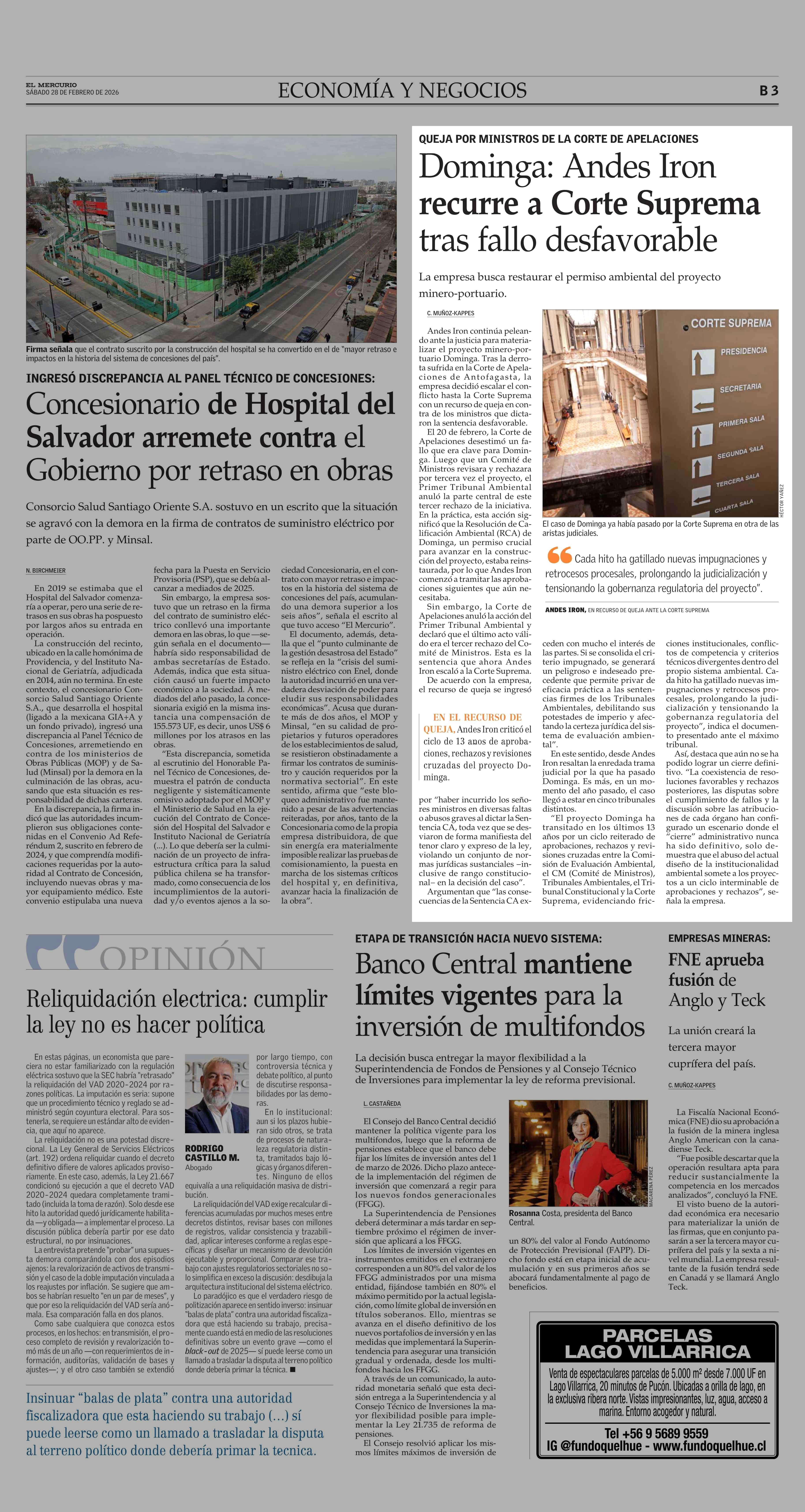 Dominga: Andes Iron recurre a Corte Suprema tras fallo desfavorable 28-02-2026 El Mercurio |